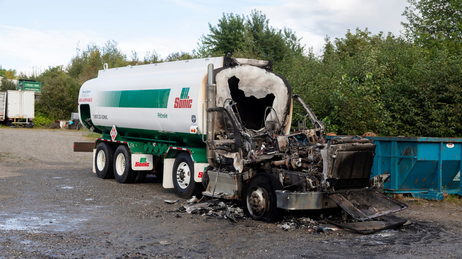 La cause de l'incendie serait due au diagnostic de régénération qui était en cours sur le camion, et qui a fait chauffer le moteur.