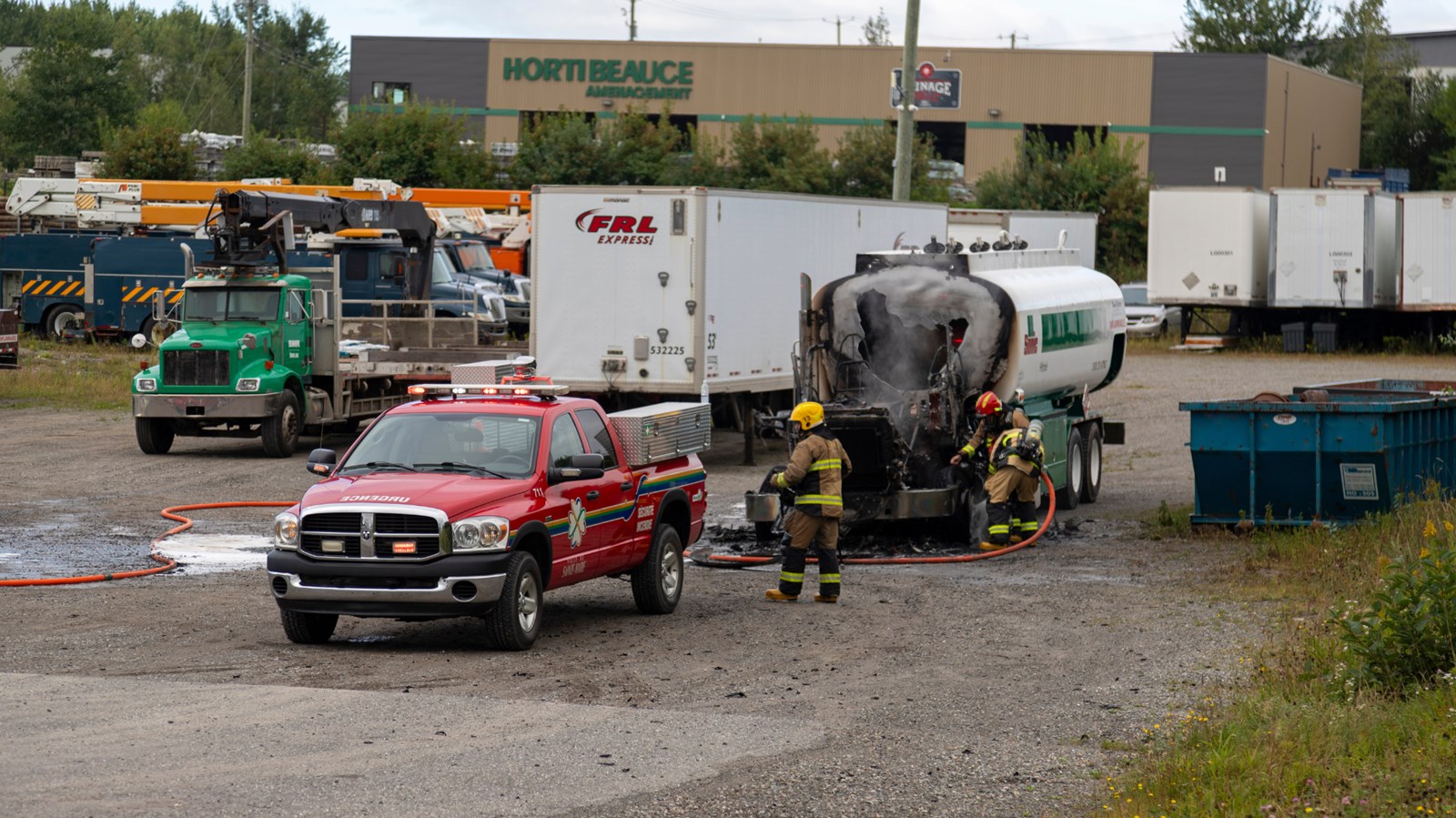 Ne sachant pas si des matières dangereuses étaient présentes dans le camion, Urgence Environnement s'est déplacé pour évaluer la situation.