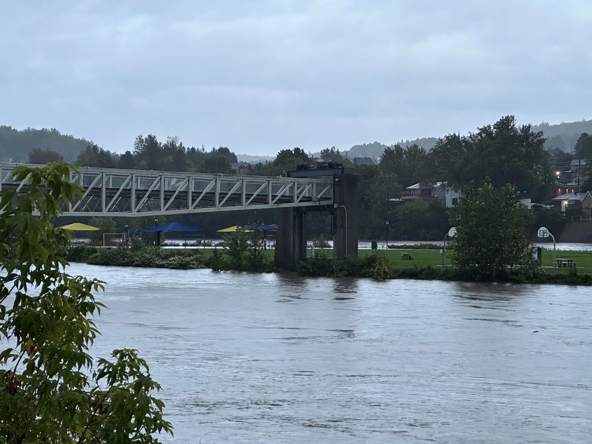 Beauceville aussi a surélevé sa passerelle du centre-ville, alors que l'eau était sur le point d'atteindre la surface de l'Île ronde.