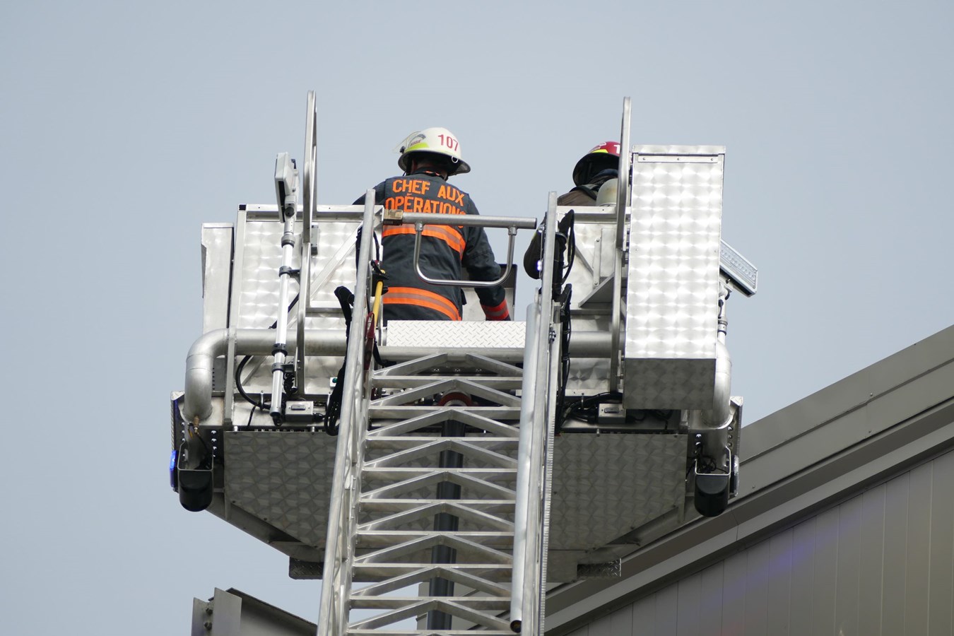 Au moment d'écrire ces lignes, les pompiers développaient l'échelle pour agir directement sur le toit.