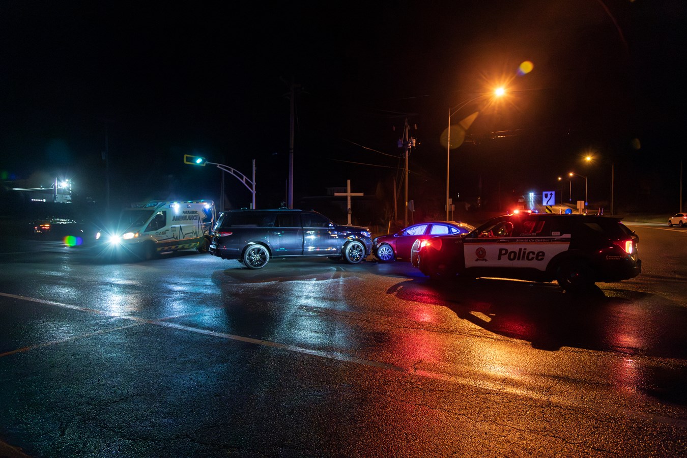 Vers 22 h 15, ce sont les policiers du poste de la MRC Beauce Centre et une ambulance du groupe CAMBI qui ont été demandés pour une collision frontale au niveau de l'intersection de la route du golf et de la route 173.