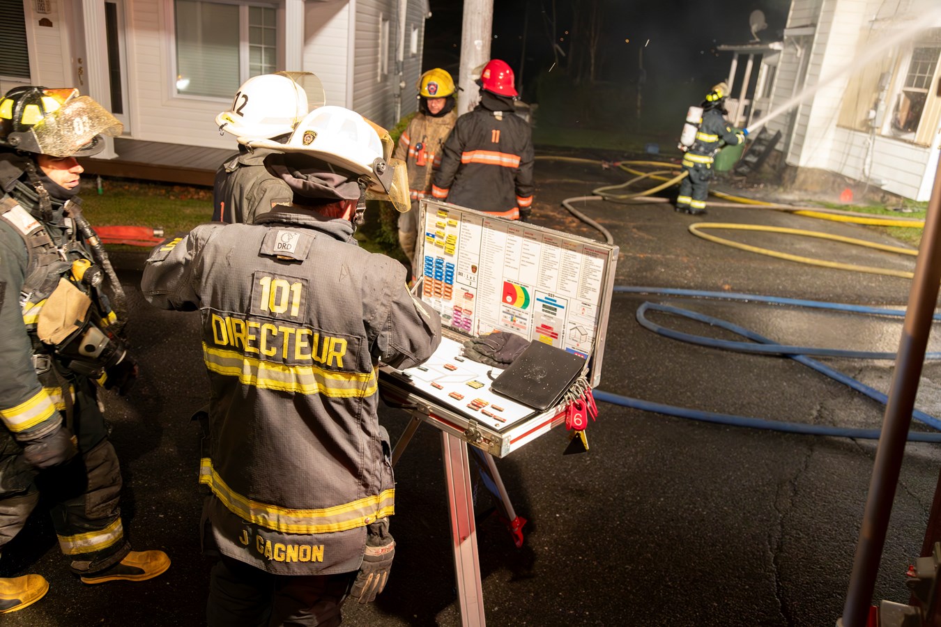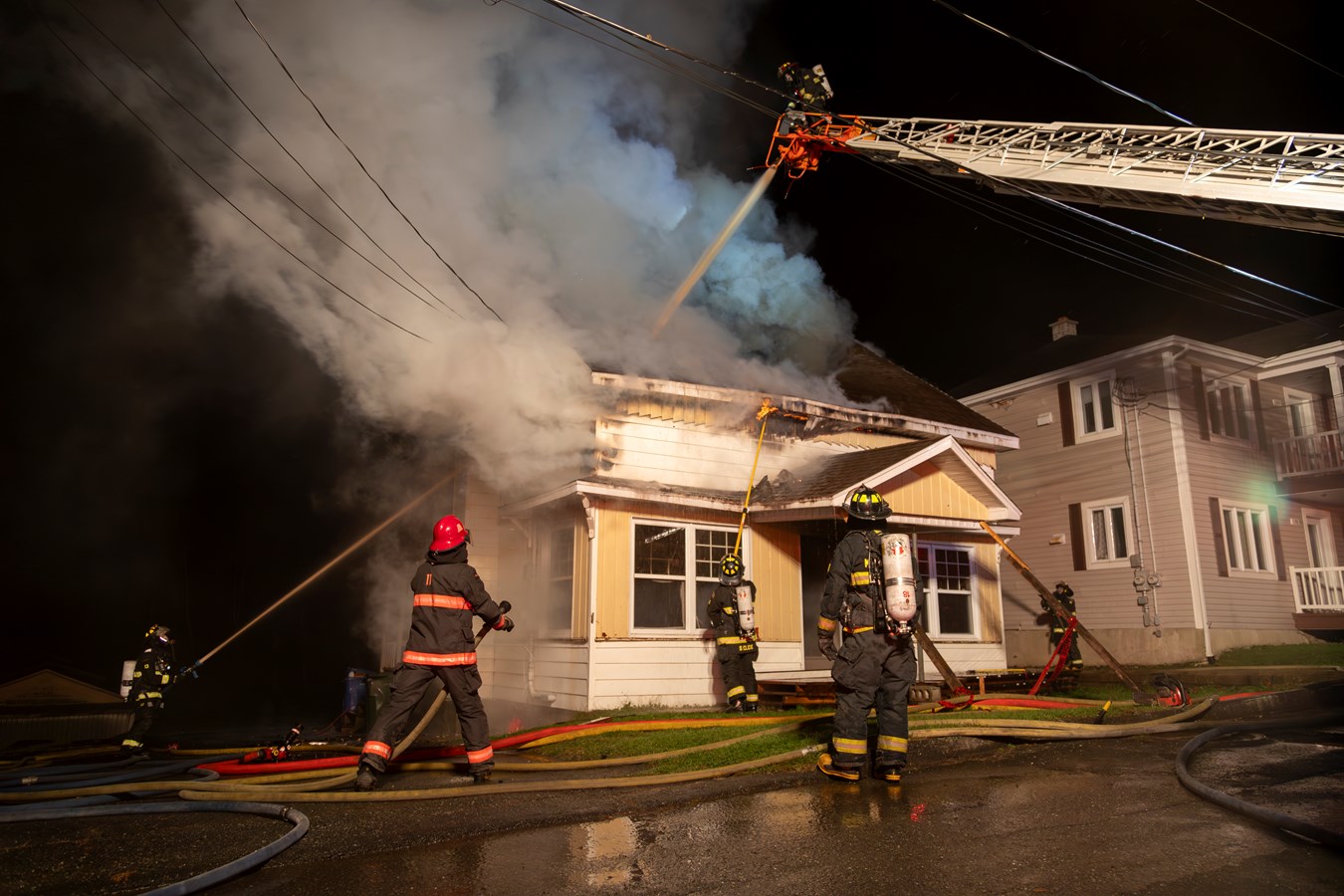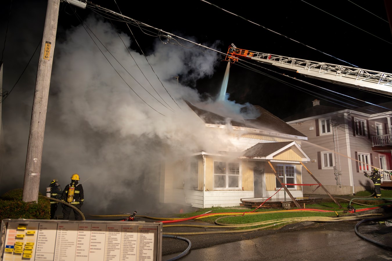 À l'arrivée des pompiers d'East-Broughton-Sacré-Coeur-de-Jésus sur place, l'incendie faisait déjà rage, des flammes étaient visibles au niveau du toit.