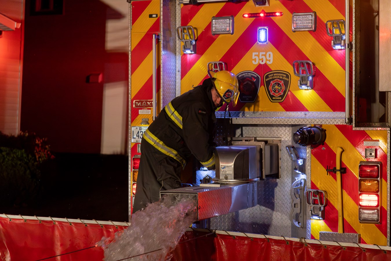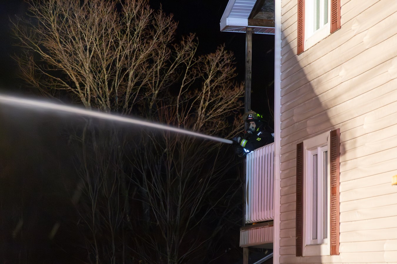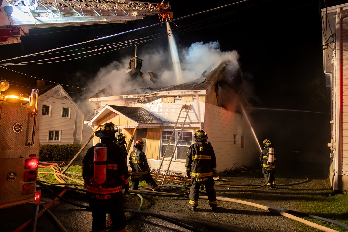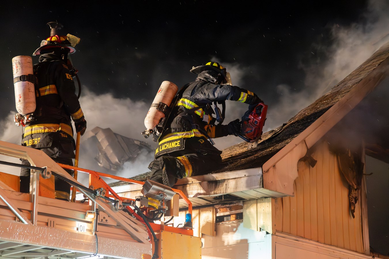 À l'arrivée des pompiers d'East-Broughton-Sacré-Coeur-de-Jésus sur place, l'incendie faisait déjà rage, des flammes étaient visibles au niveau du toit.