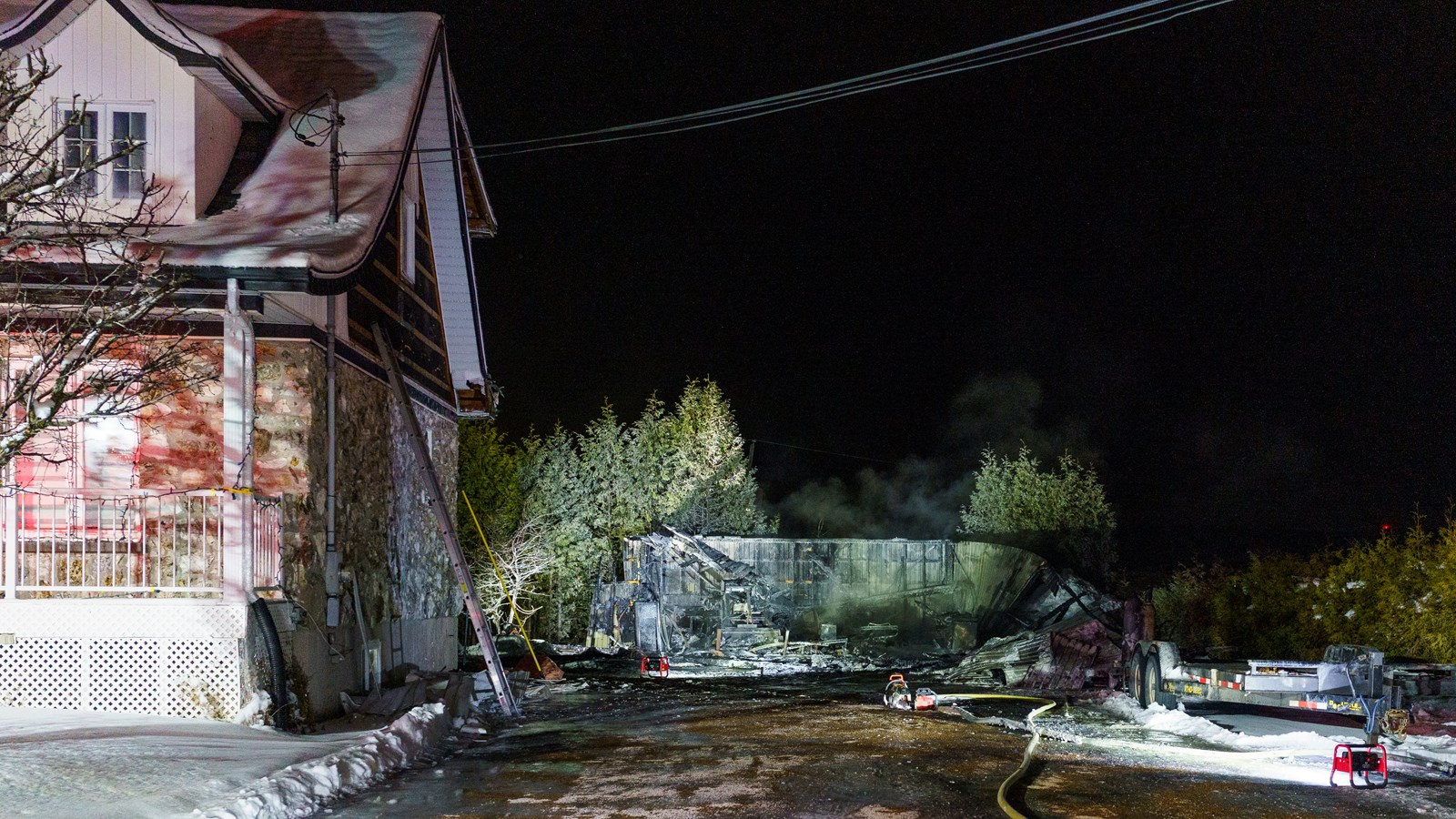 Un garage résidentiel ravagé par les flammes à Notre-Dame-des-Pins