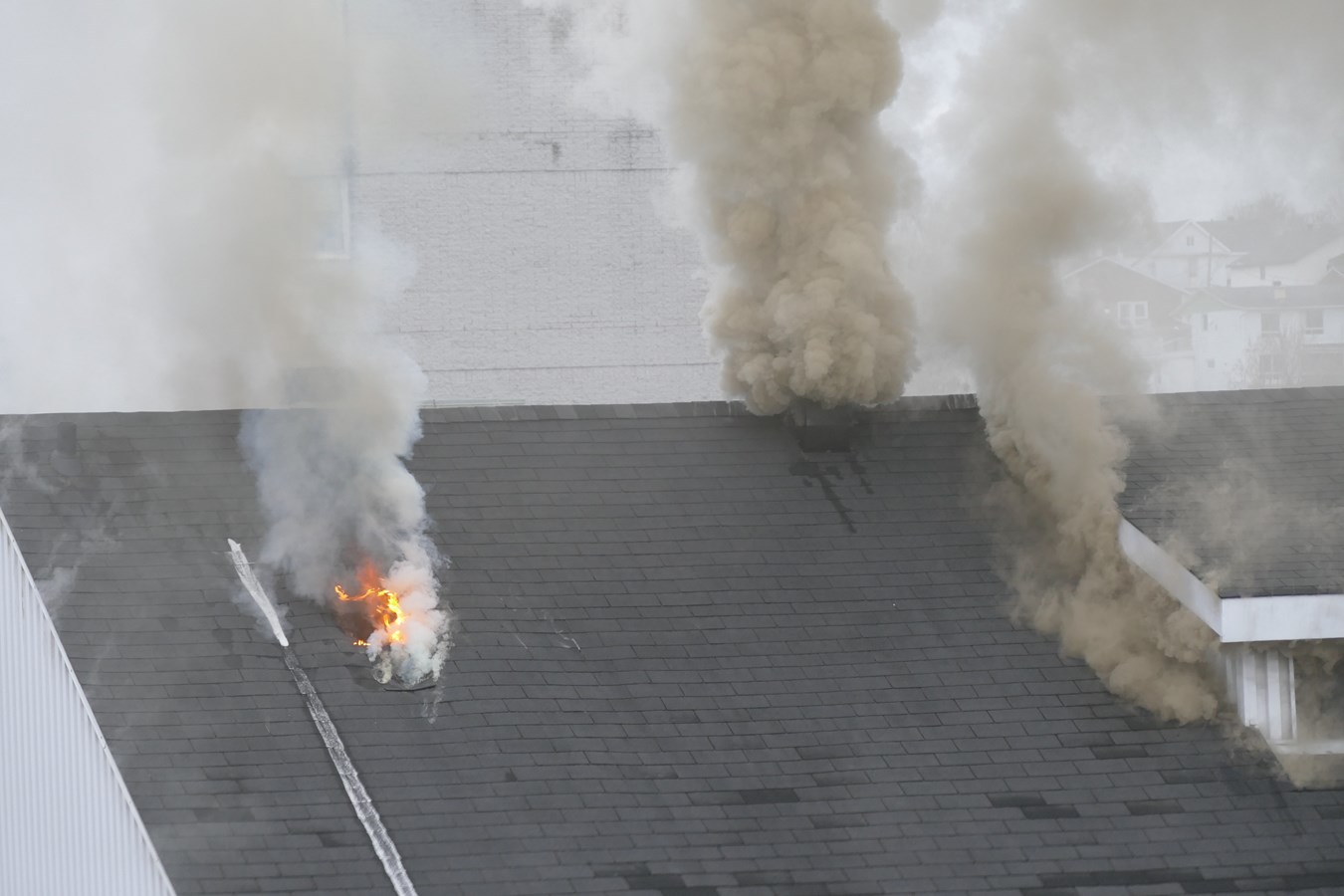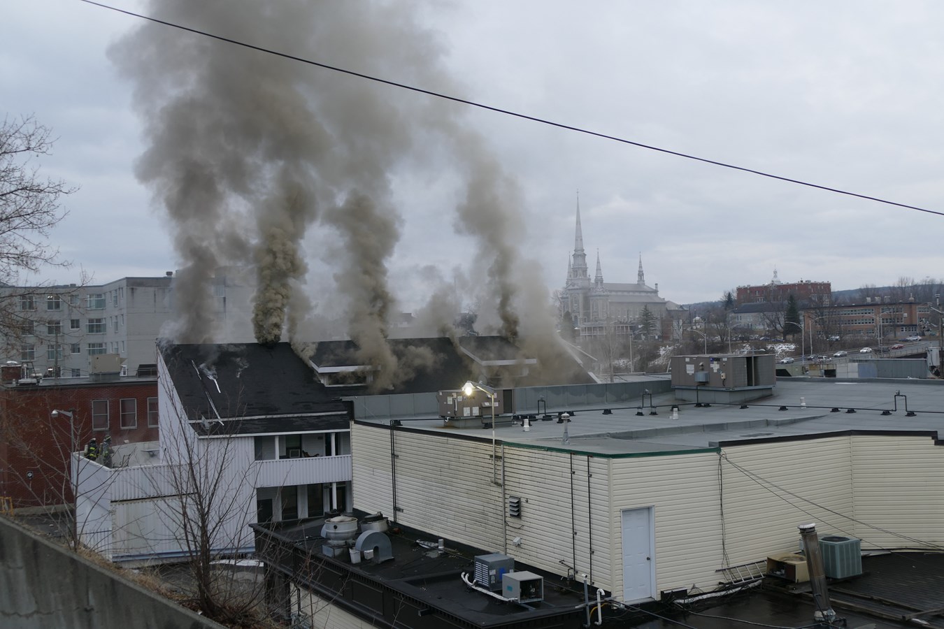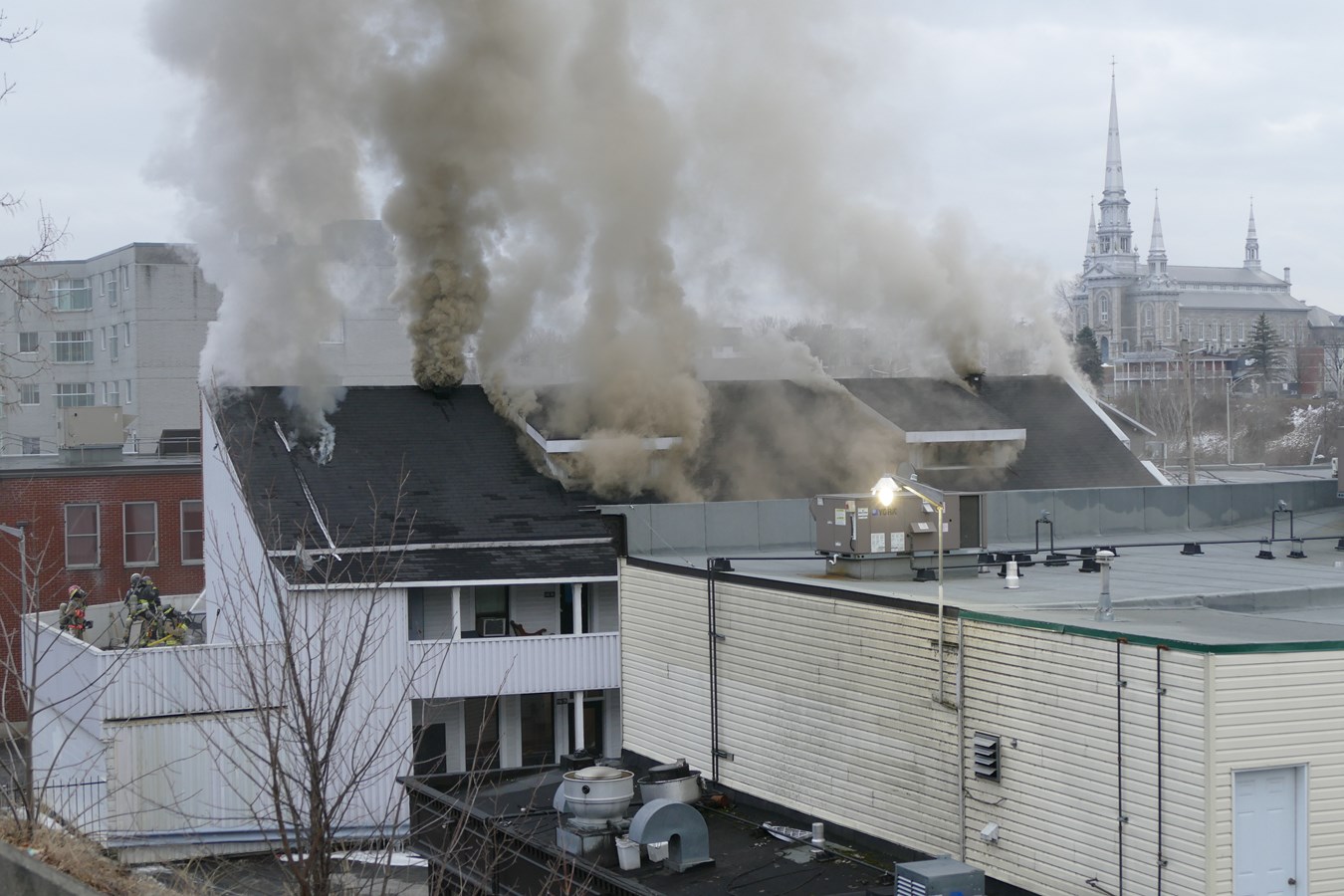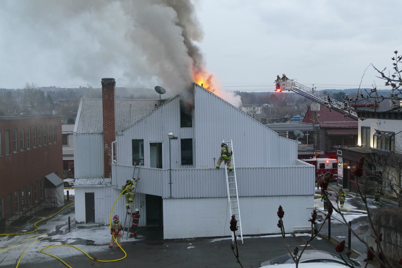 À l'arrivée des pompiers, le feu avait largement éclaté et une importante colonne de fumée s'élevait, visible dans toute la ville.