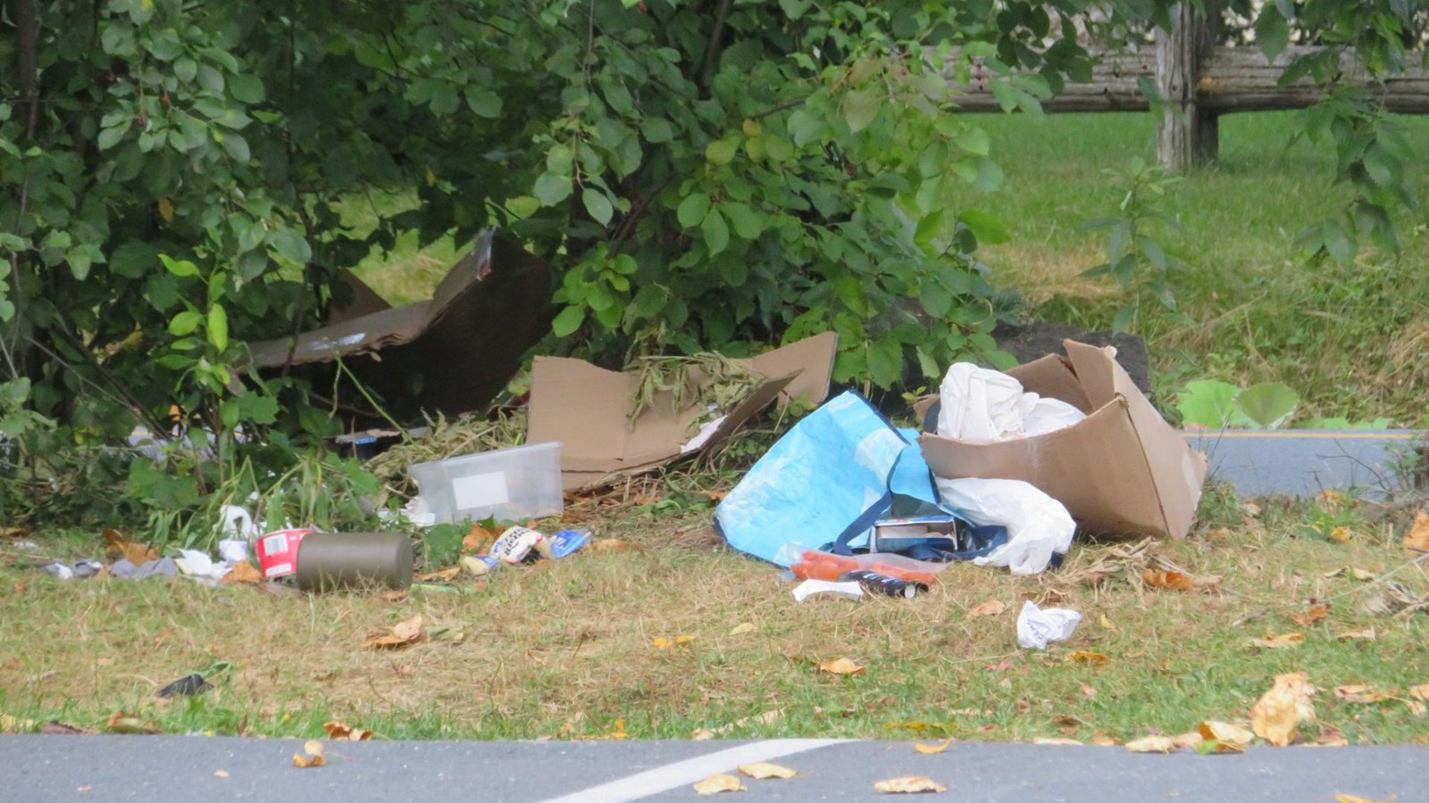 Détritus dans le parc