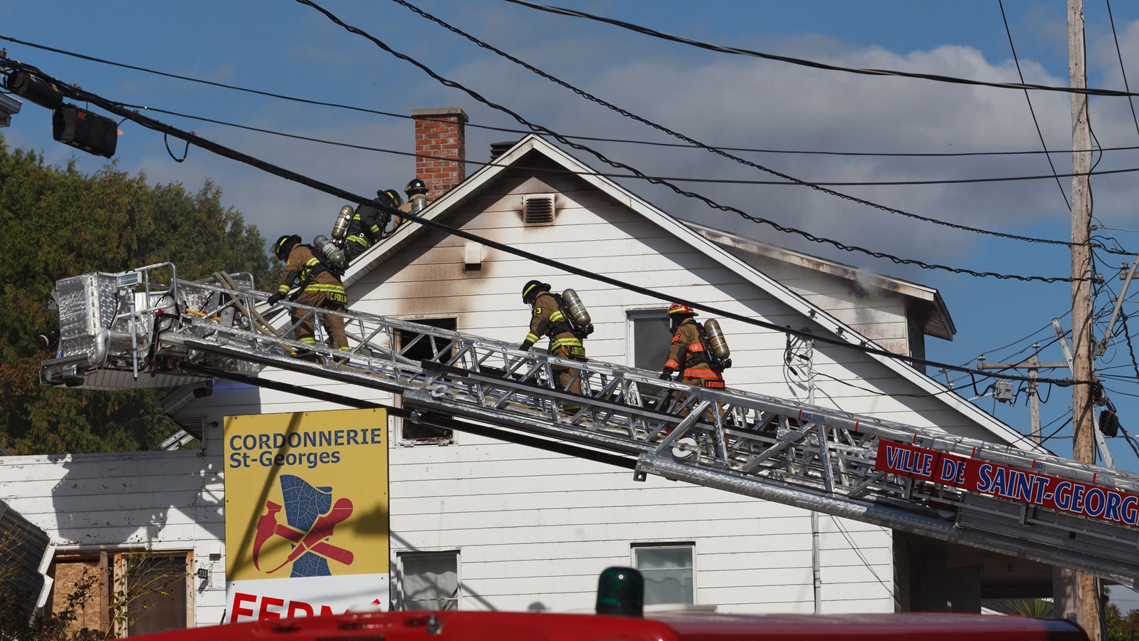 Le chef a raconté que son équipe a reçu l'appel vers 14 h pour un feu au deuxième étage du 235, 120e rue à Saint-Georges. Les détails indiquaient que de la fumée sortait du toit et que quelqu'un était piégé à l'intérieur. Par chance, tous les résidents avaient pu finalement à temps.