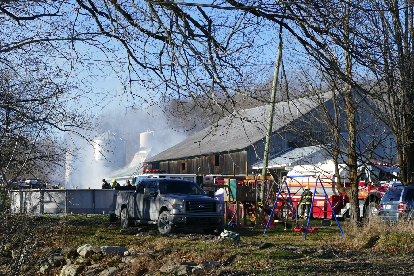Un incendie s'est déclaré ce dimanche 3 novembre aux alentours de 8 h 30 dans une ferme laitière du 11e rang, à Sainte-Clothilde-de-Beauce.