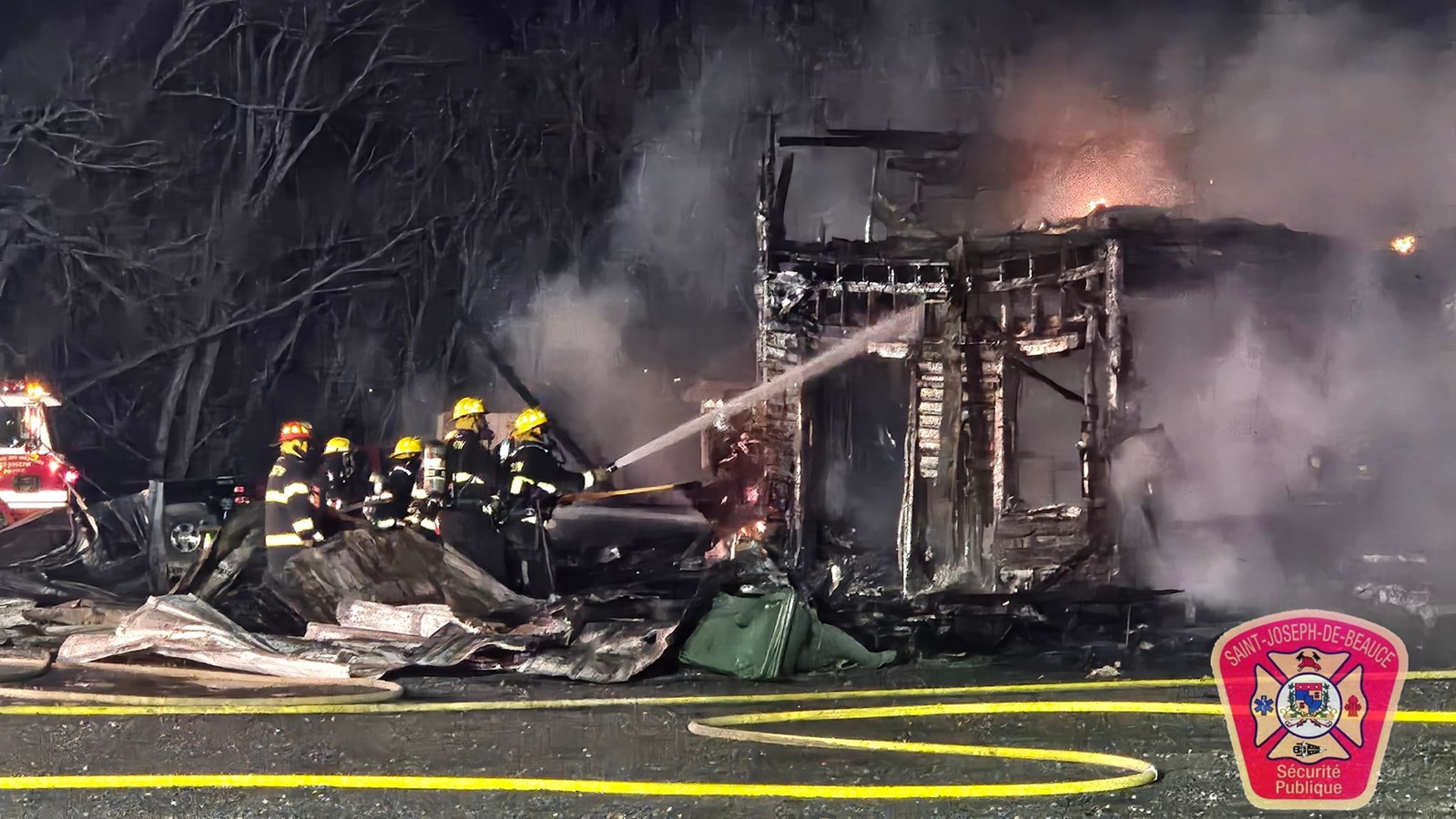 Pour renforcer les moyens déployés, des équipes des services incendie de Beauceville et de Vallée-Jonction ont été appelées en renfort, apportant notamment un camion-citerne pour soutenir les opérations.