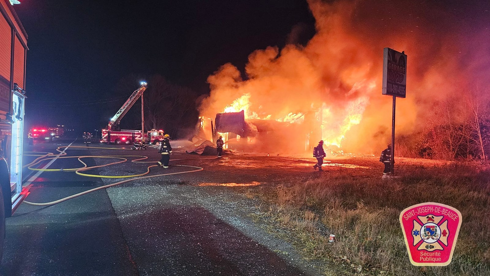 Un incendie majeur a ravagé le Garage 10/10, situé au 410 route 173 Nord, à Saint-Joseph-de-Beauce, dans la nuit du mercredi 6 novembre.