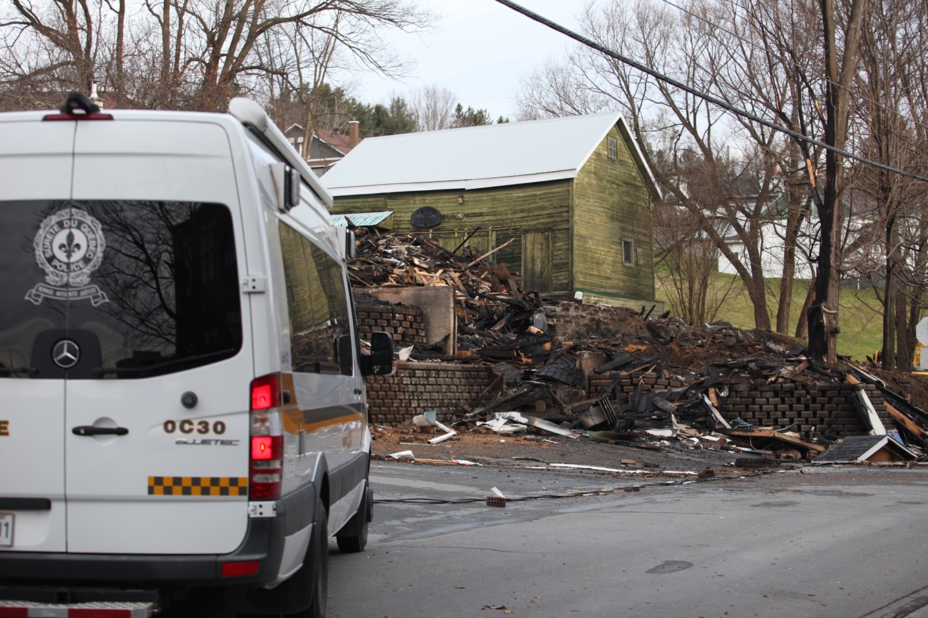 Depuis ce matin, un enquêteur des crimes majeurs et un technicien en scène d’incendie de la Sûreté du Québec sont sur place. Leur mission est de déterminer l’origine exacte de l’incendie et de vérifier si des victimes se trouvent parmi les décombres.