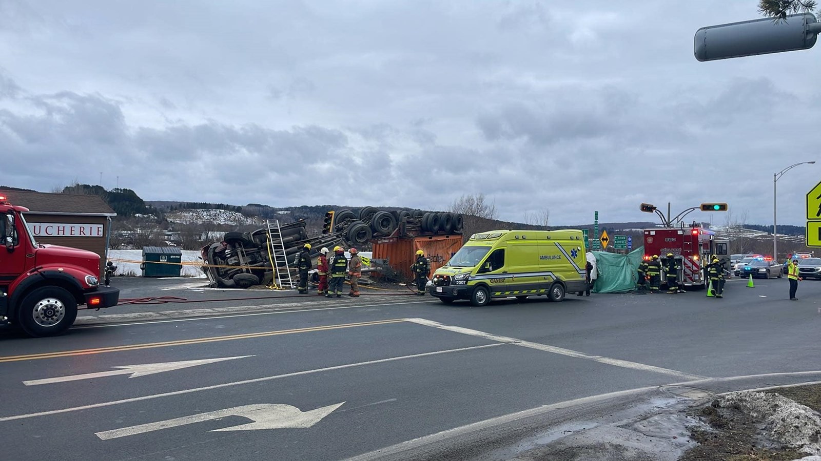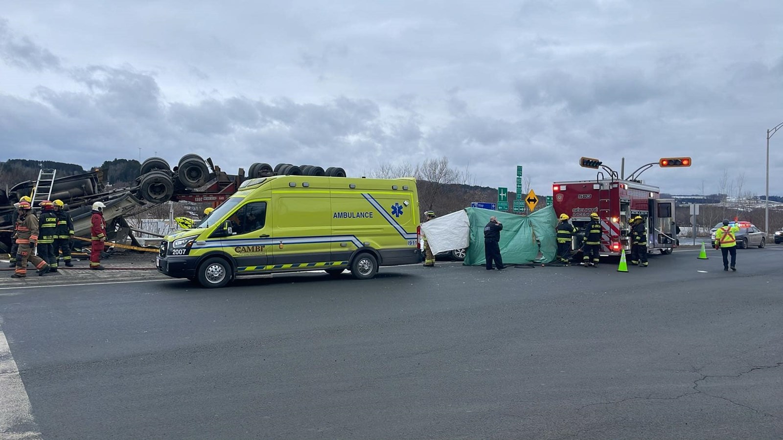 Une vingtaine de pompiers des Services de sécurité incendie de Saint-Joseph-de-Beauce et de Vallée-Jonction se sont rendu sur place ainsi que deux ambulances du groupe Cambi, des policiers de la Sûreté du Québec.