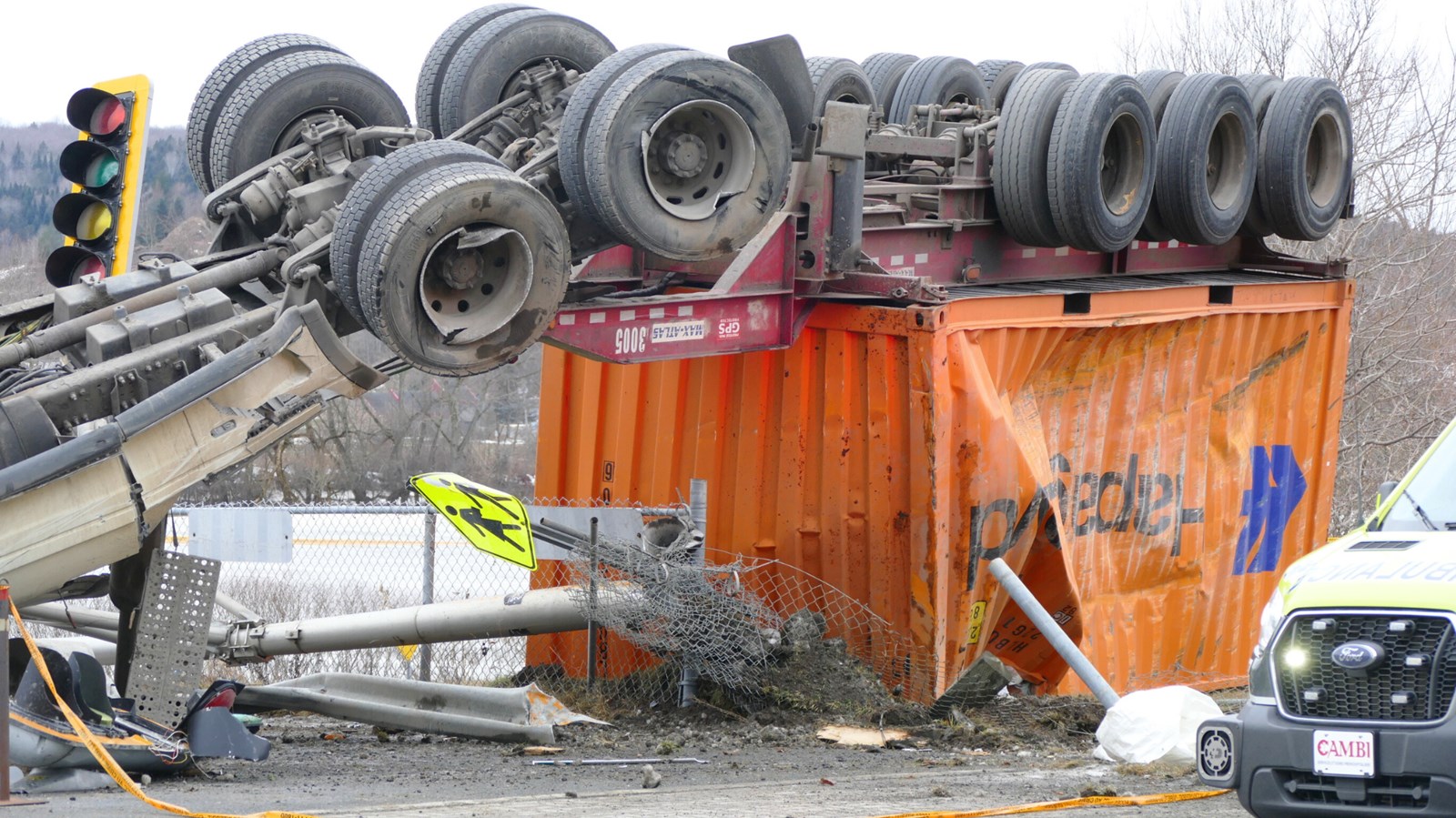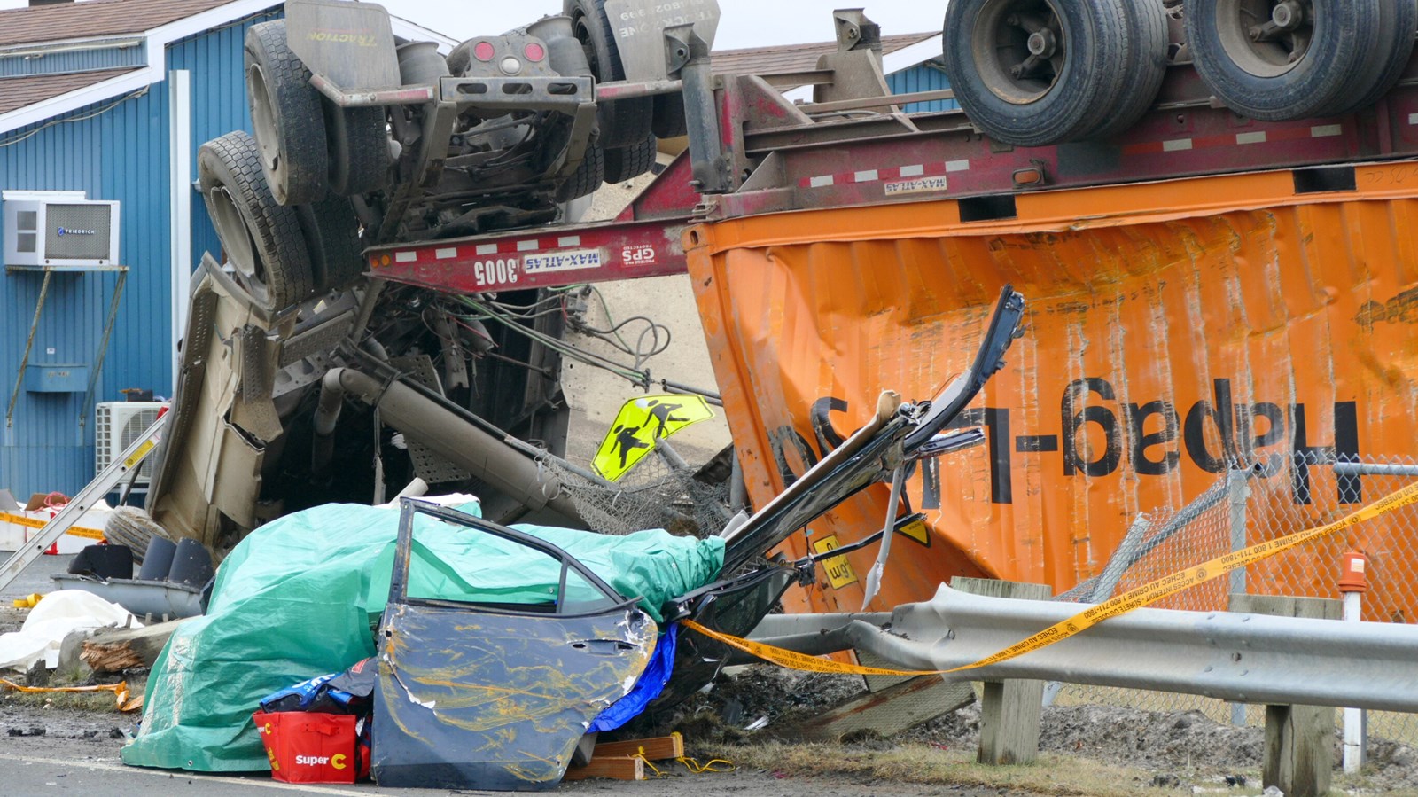 Un camion 53 pieds ce serait retrouvé par dessus une voiture, selon les informations préliminaires.