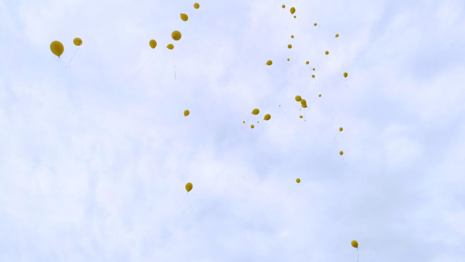 Des ballons de baudruche libérés dans le ciel en mémoire d'Alexandra Poulin.
