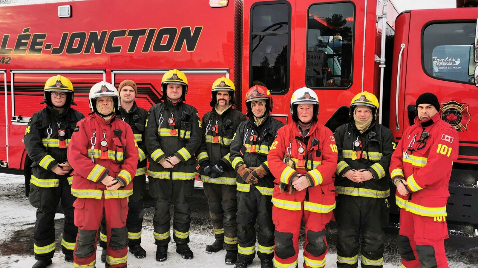 C'est le SSI de Vallée-Jonction qui a agi comme premiers répondants lors de l'accident du 18 décembre. On voit ici quelques uns des membres de la brigade qui ont assisté au rassemblement.