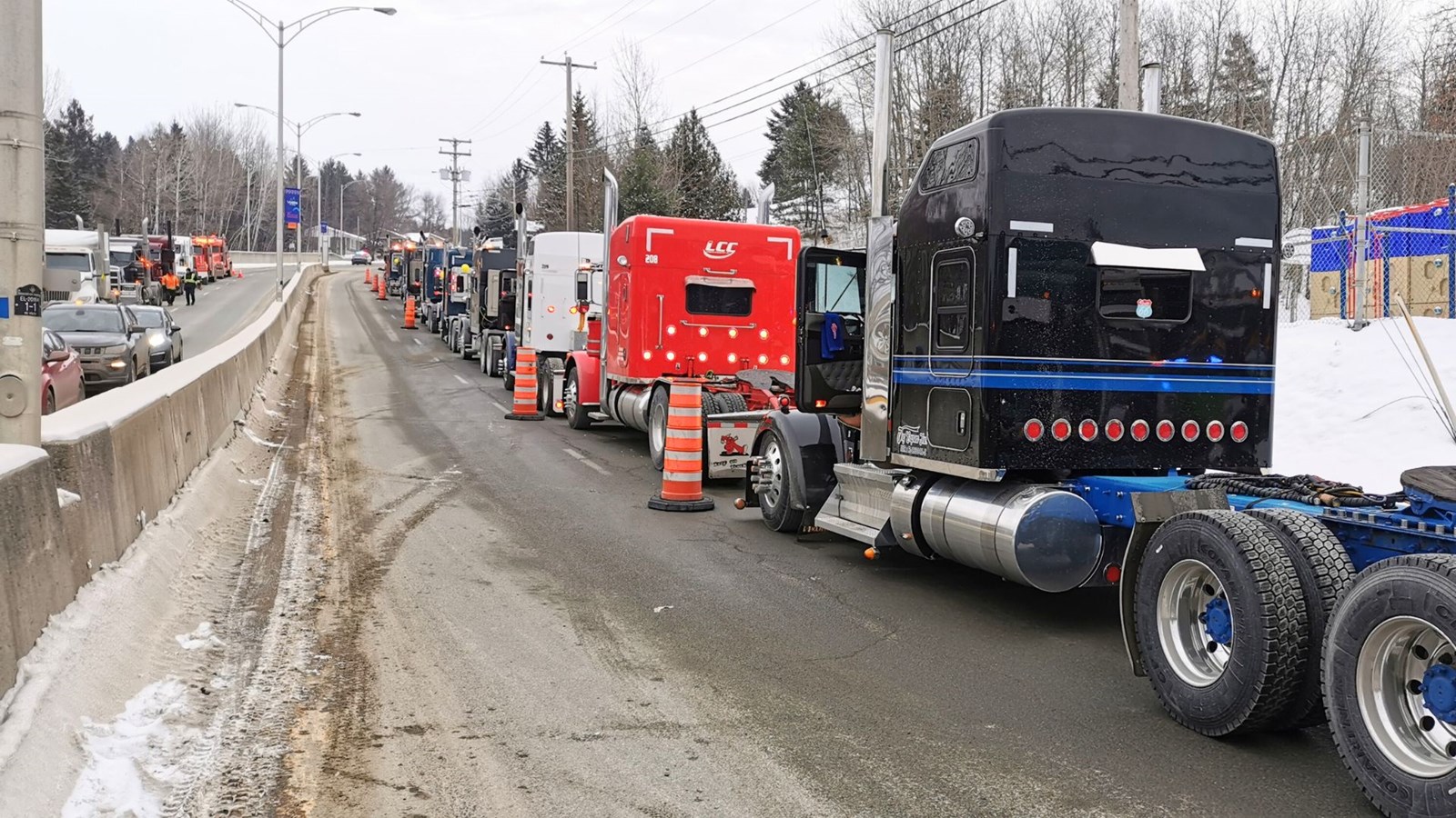Quelques uns de la centaine de camions semi-remorque provenant de partout au Québec.