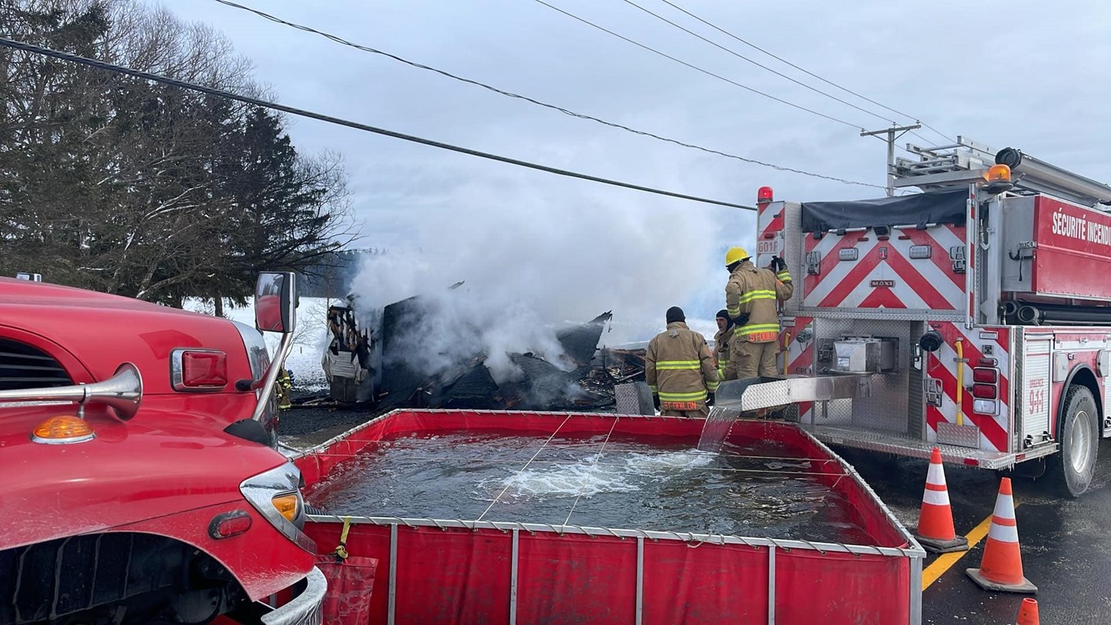 Les services de sécurité incendie de Sainte-Rose, Saint-Benjamin, Saint-Odilon-de-Cranbourne et Saint-Prosper sont sur place.