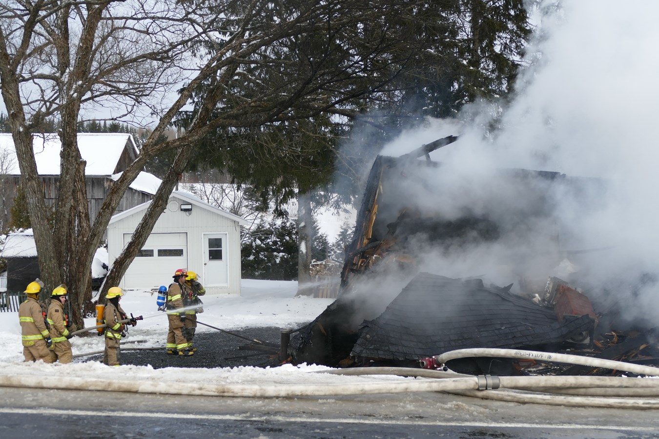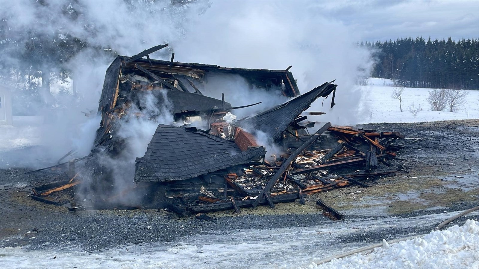 L'incendie a mis la maison à terre qui est donc une perte totale. L'origine de l'événement reste inconnu au moment d'écrire ces lignes.
