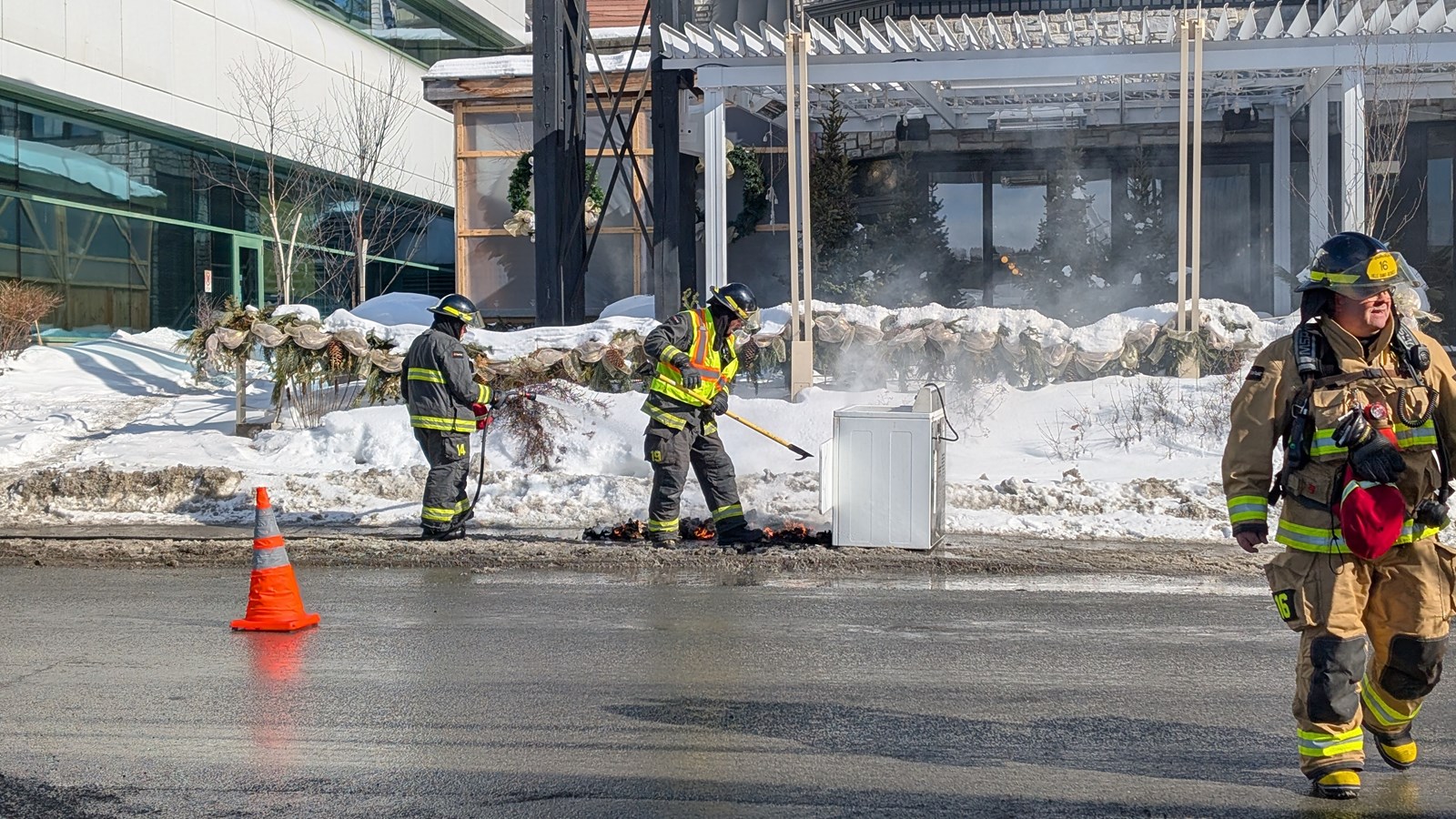Le Service de sécurité incendie (SSI) de la ville a reçu un appel vers 10 h mentionnant une importante fumée grise à l'étage. Une fois sur place, il a constaté que la fumée dense provenait du sèche-linge. L'appareil a été sorti du restaurant et les pompiers ont rapidement éteint l'incendie pour éviter une propagation. Ils ont ensuite procédé à la ventilation des lieux.
