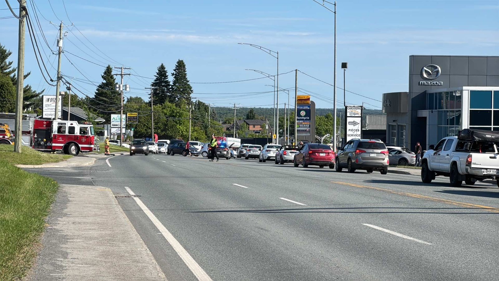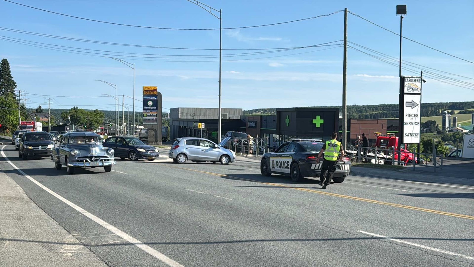 L'accident s'est produit vers 17 h 30, sur le boulevard Lacroix, à l'intersection de la 155e rue, près du concessionnaire automobile Mazda.