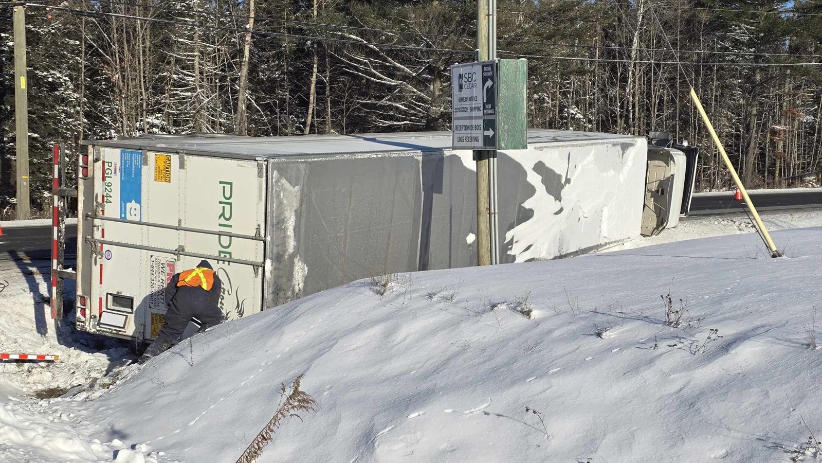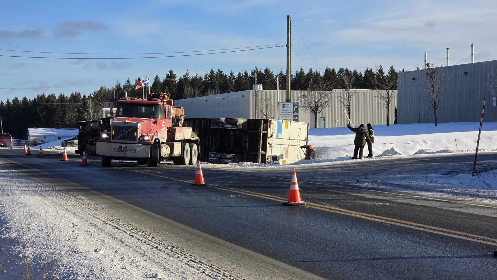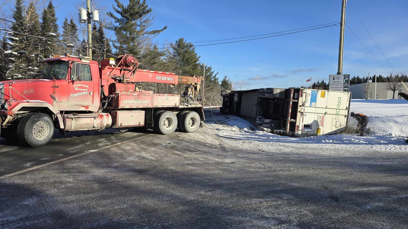 Une camion-remorque s'est renversé ce matin à Saint-Prosper.