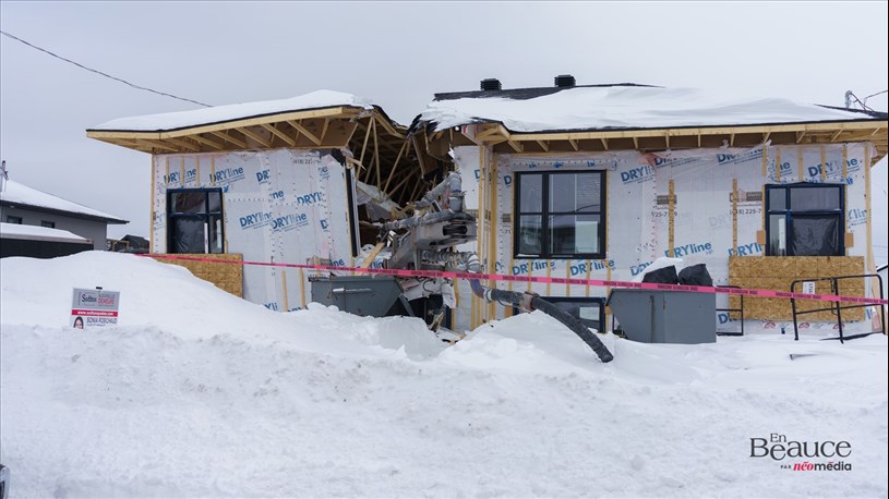 Une maison en construction sur la 18e avenue à Saint-Georges, a été coupée en deux par un camion d'injection de ciment ce mercredi matin.