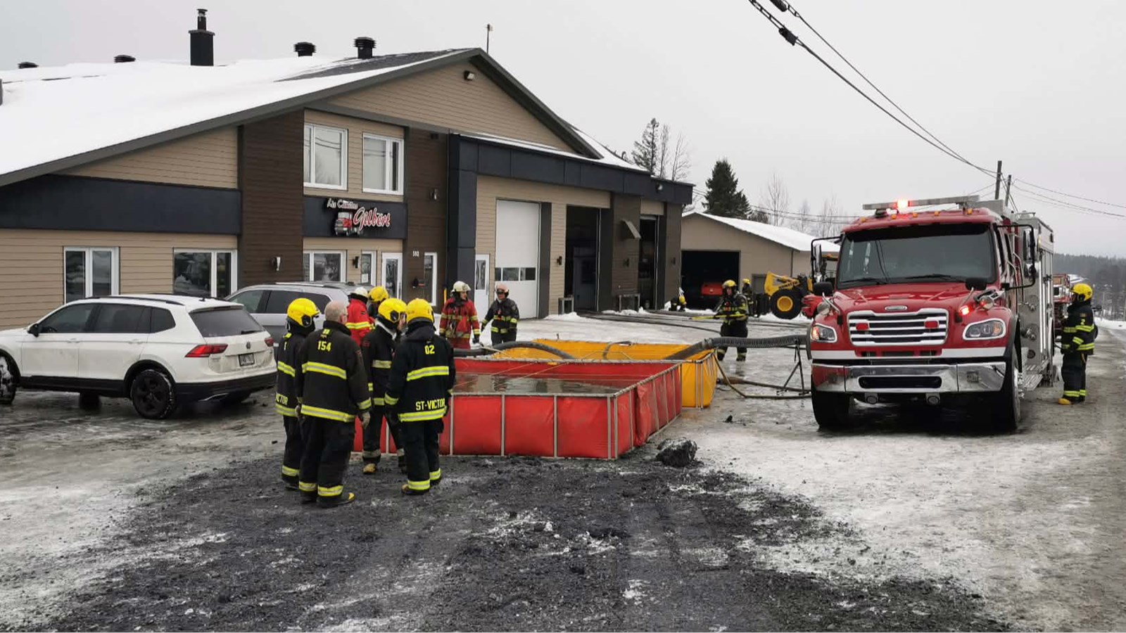 Un incendie s'est déclaré au garage Les camions Gilbert, sur la route 108 à Beauceville en fin de matinée.