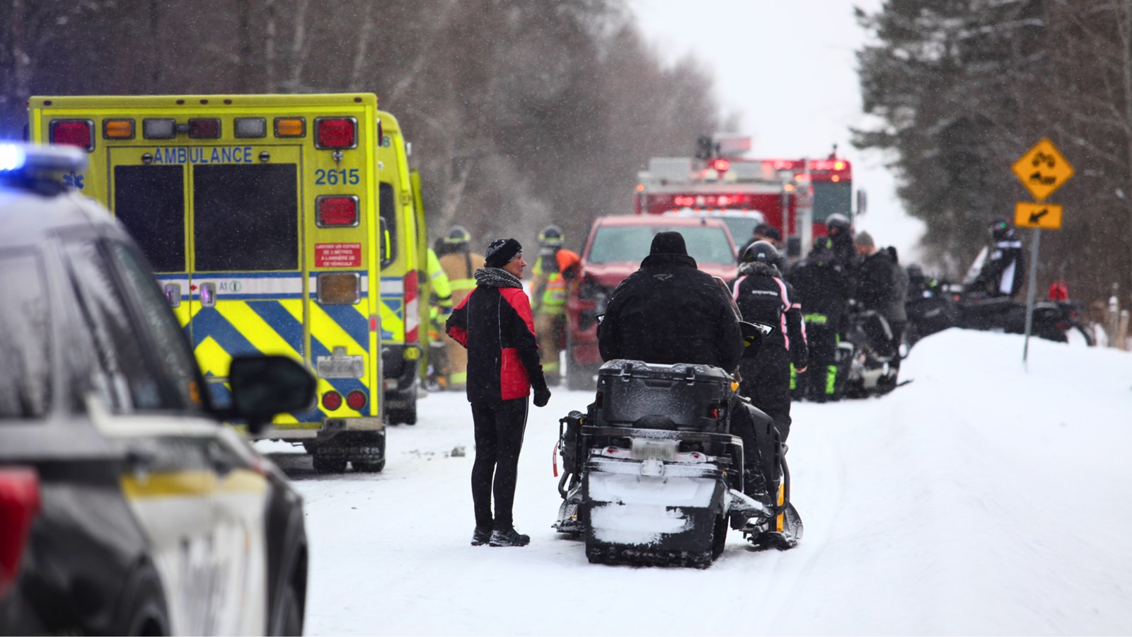 Selon les communications de la Sûreté du Québec, deux passagers étaient présents sur la motoneige au moment de la collision.