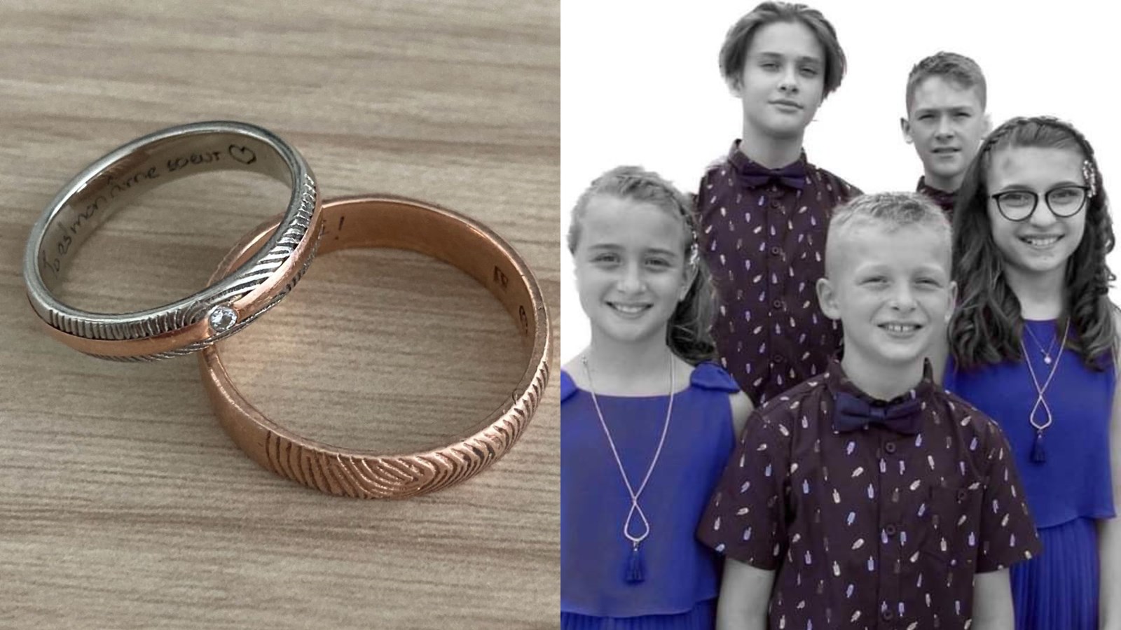 Aussi, la bague de finissante de la sœur de Mathieu, Claudia, a été coulée dans les alliances.