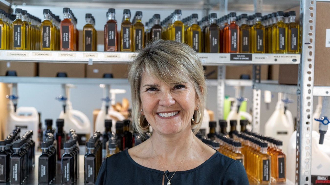 Aujourd’hui, rencontrez Catherine Veilleux. Elle est la fondatrice de l’entreprise Olives et Gourmandises de Saint-Georges. Malgré qu’elle a parti son entreprise tard dans son parcours, cela ne l’empêche pas d’être une vraie passionnée et dédiée à son affaire. Mère de famille, elle a remis ses projets à plus tard et c’est en 2014 qu’elle a lancé son commerce d’huile d’olive et aujourd’hui elle travaille avec sa fille et ne pourrait être plus heureuse.