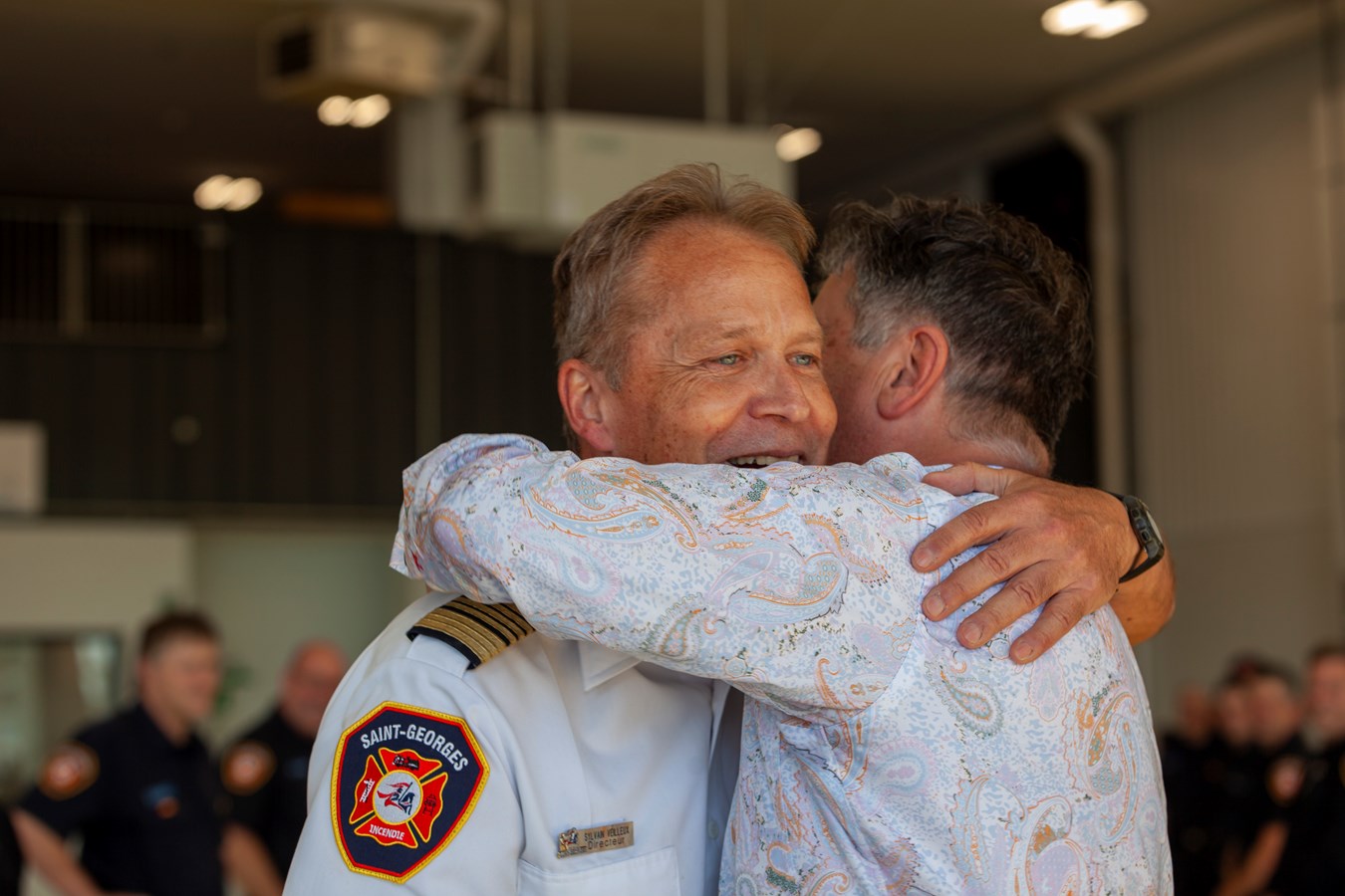 « Je me sens en paix, je me sens très bien. Mon plus beau cadeau il est ici, c'était de voir ma gang, ma deuxième famille. Ils sont tous là, c'est merveilleux », a-t-il mentionné à EnBeauce.com alors que les pompiers de Saint-Georges se sont réunis à la caserne pour lui rendre un dernier hommage ce mercredi soir. « C'est un beau rêve qui se termine et qui se continue. On peut pas être plus heureux que ça! »