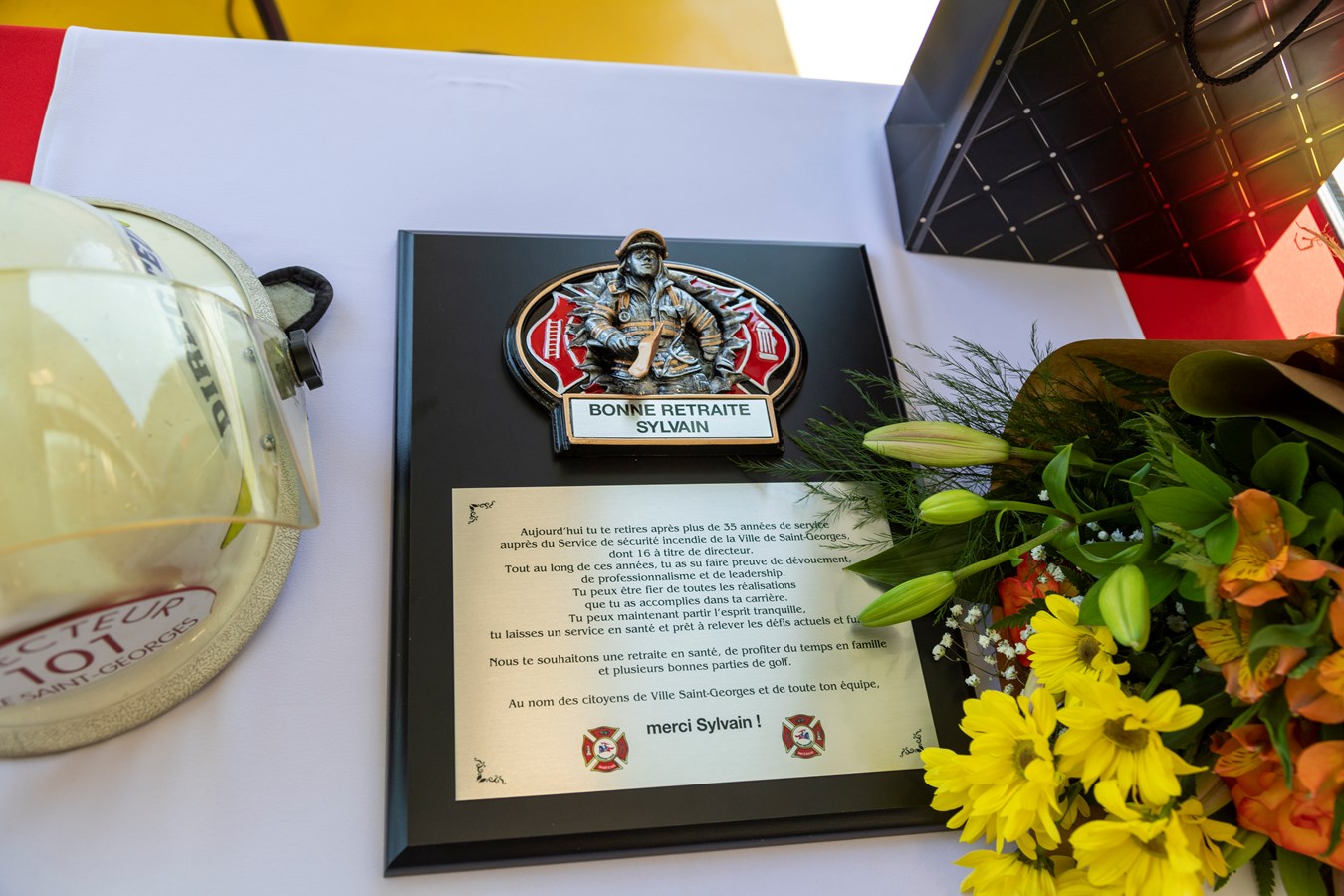 Pompier depuis le 28 novembre 1988 et directeur du Service de sécurité incendie de Saint-Georges depuis 2007, Sylvain Veilleux a rendu son uniforme.