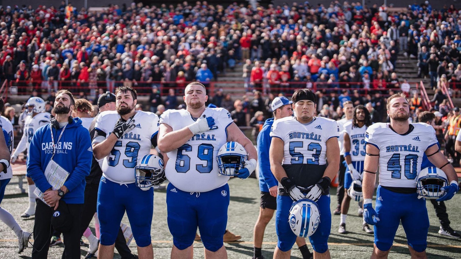 Il joue aujourd'hui sur la ligne offensive chez les Carabins, arborant fièrement son numéro 69.