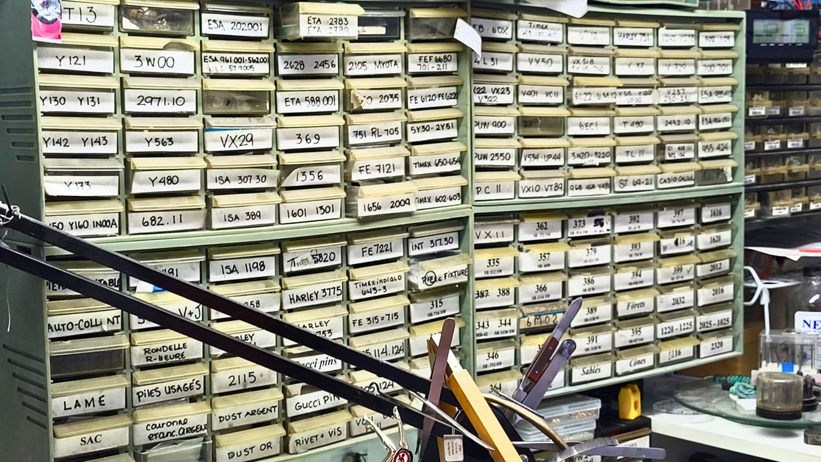 Inventaire détaillé de pièce pour réparer des montres et des bijoux, notamment.