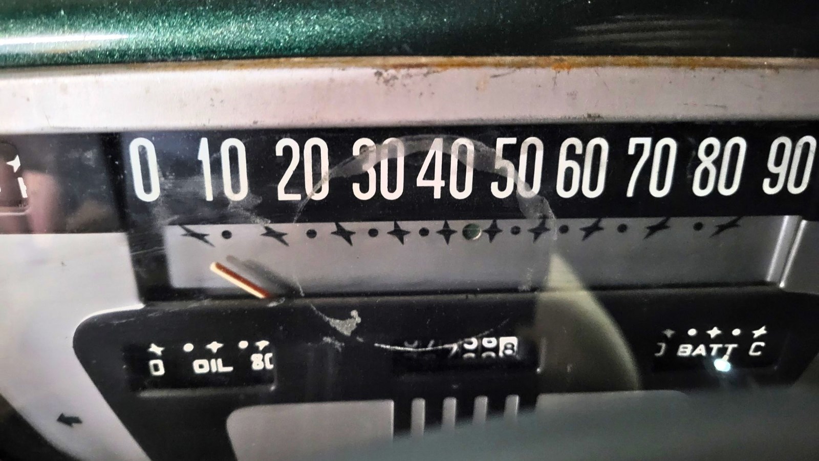 Autre cadran à l'intérieur de la Mercury 1953, indiquant la vitesse et le kilométrage du véhicule.
