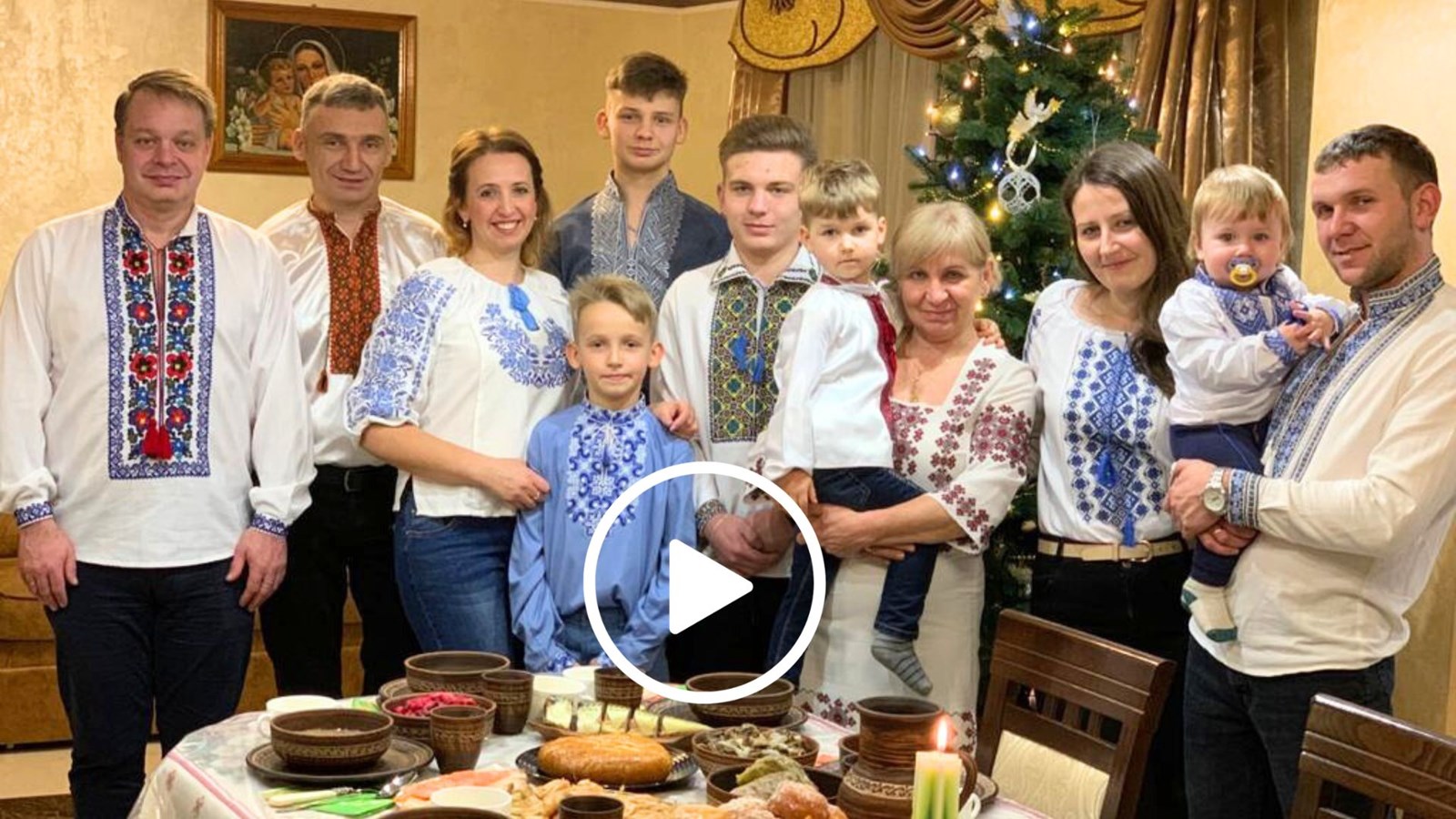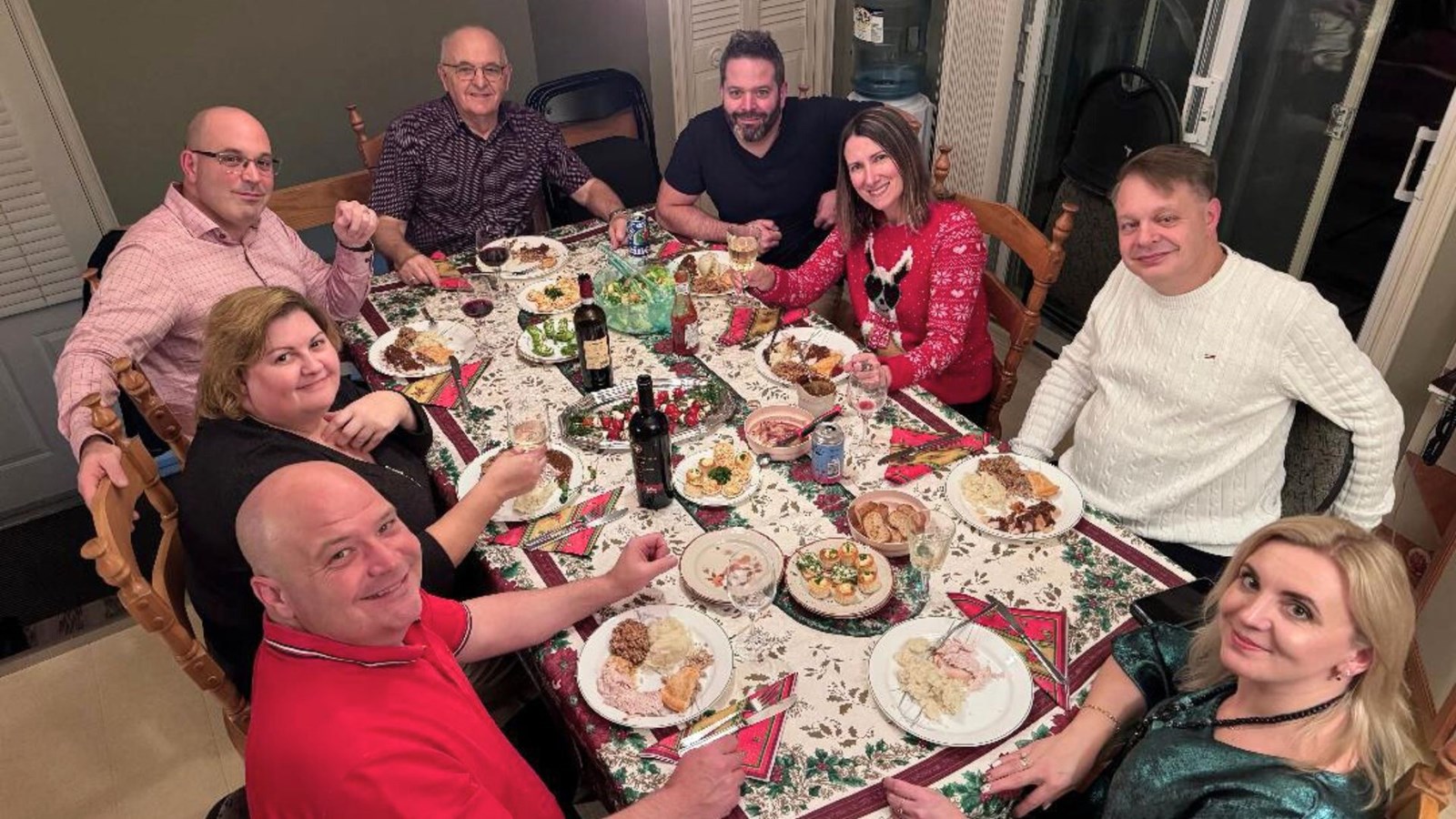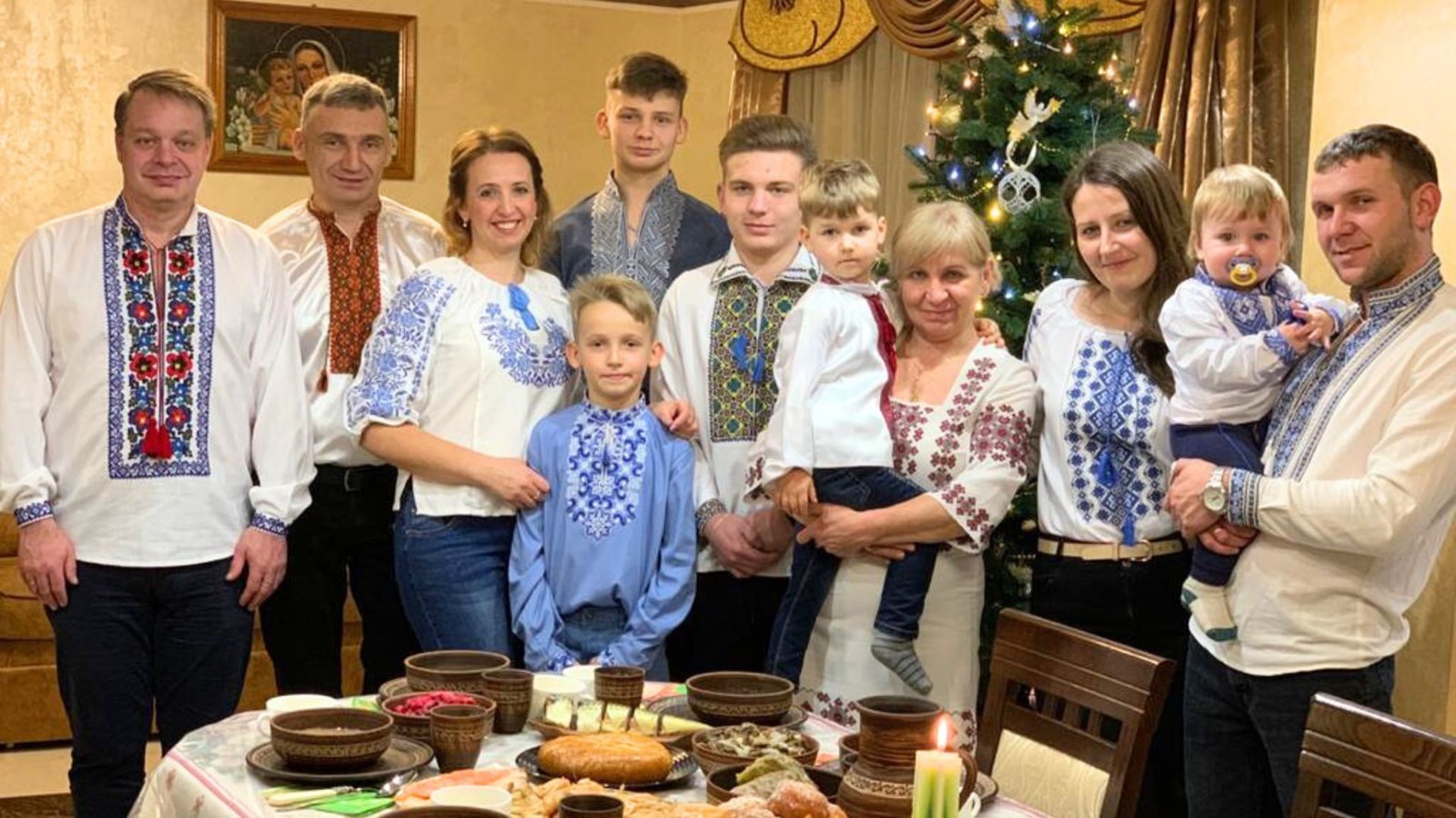 À l'extrême gauche, Sylvain Longchamps, à Noël dernier, avec la famille de son épouse ukrainienne.