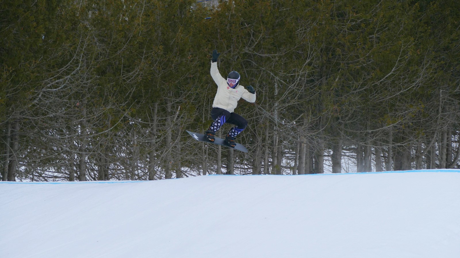« On est ici avec l'équipe nationale pour une semaine et on s'entraîne avant de repartir en Europe. On a la chance d'avoir une très belle piste de snowboard cross ici et d'être à la maison pour préparer une coupe du monde, c'est vraiment super », a expliqué Éliot Grondin en entrevue avec EnBeauce.com.