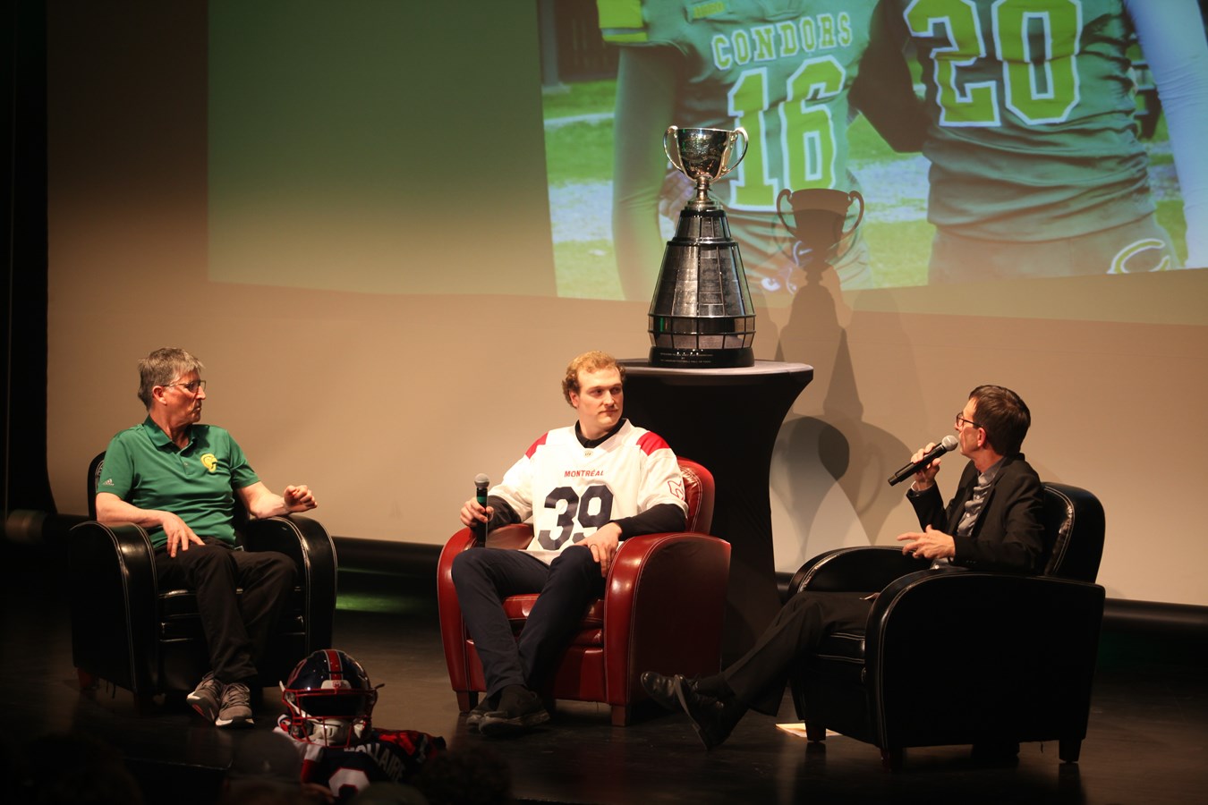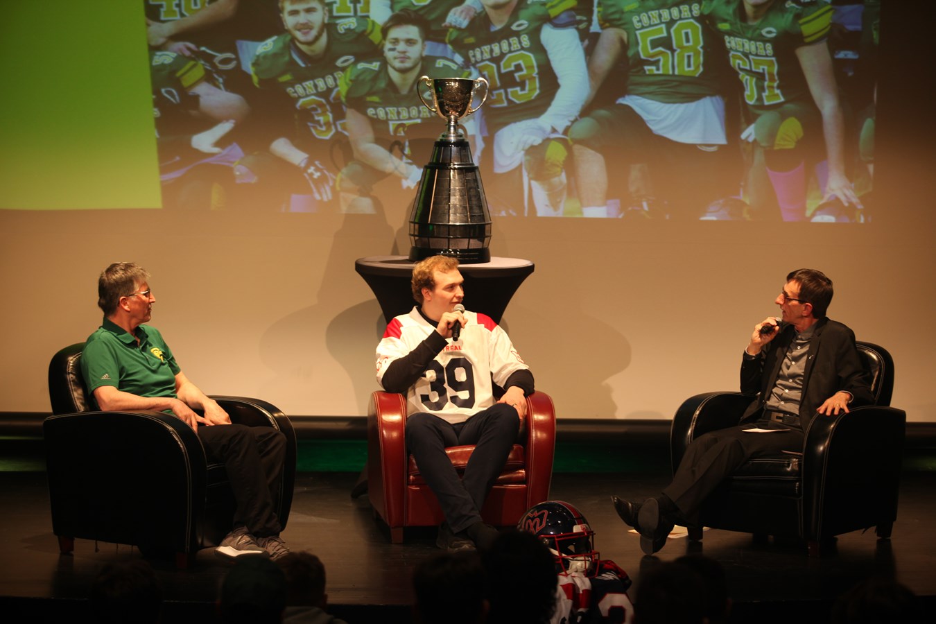 Après avoir fait le tour des établissements du secondaire, David Dallaire était au Cégep Beauce-Appalaches, ce jeudi 18 avril, afin de donner une conférence sur sa victoire en Coupe Grey, mais aussi sur son parcours avec l'équipe des Condors.