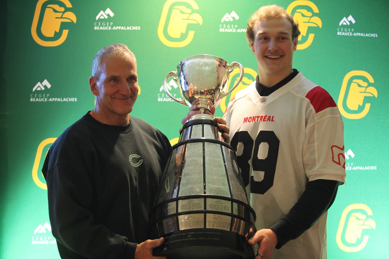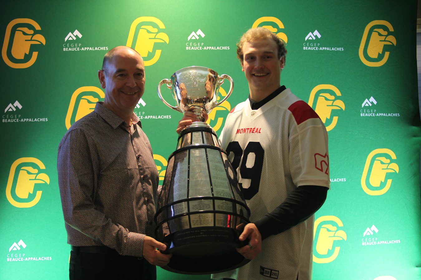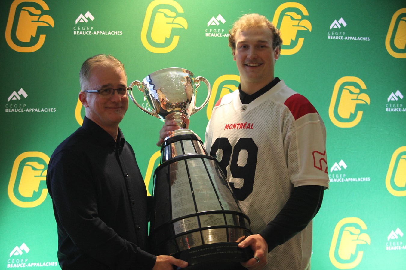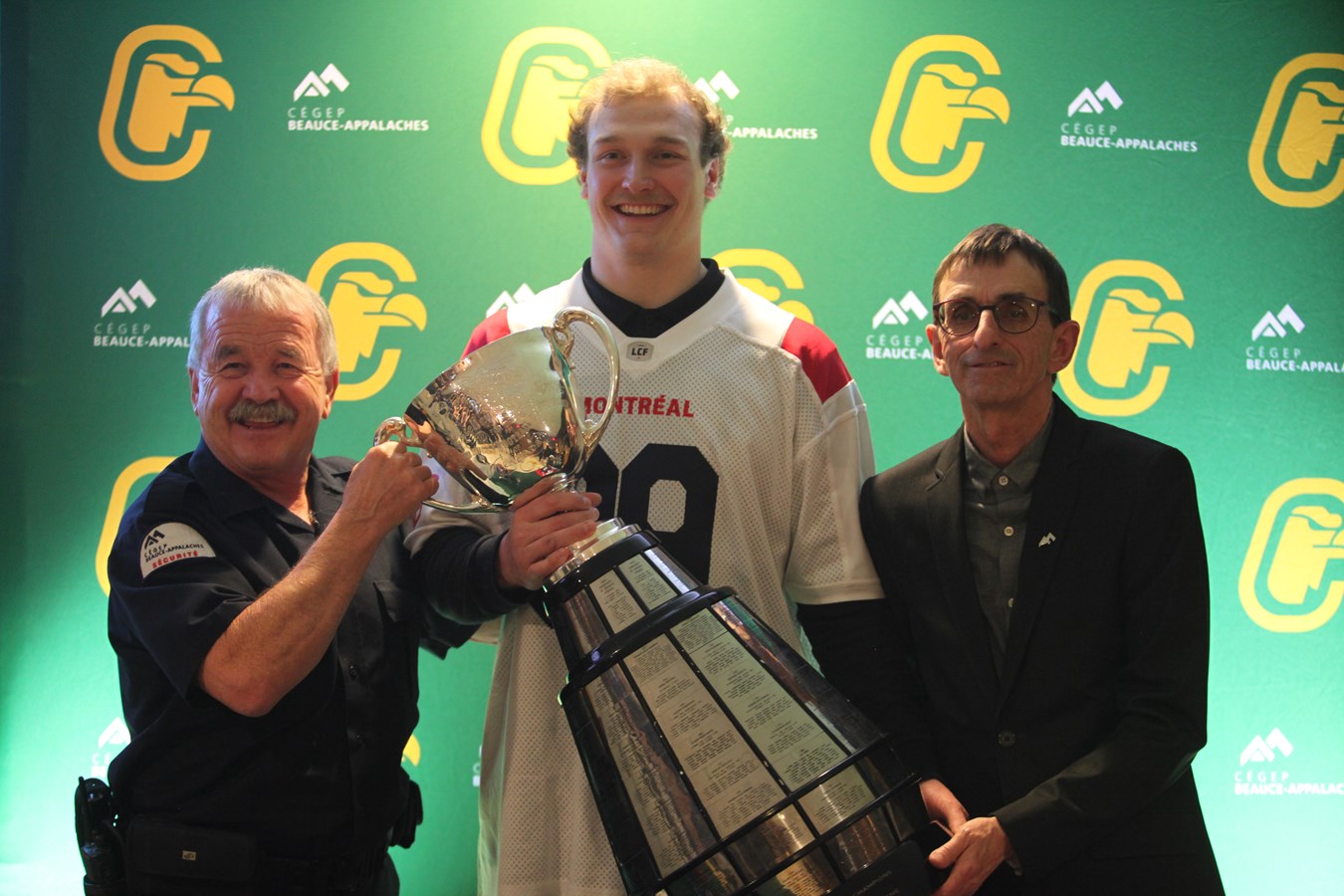 David Dallaire présente la Coupe Grey aux Condors du Cégep Beauce-Appalaches