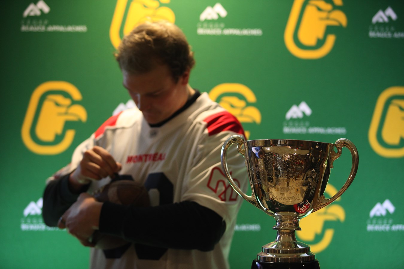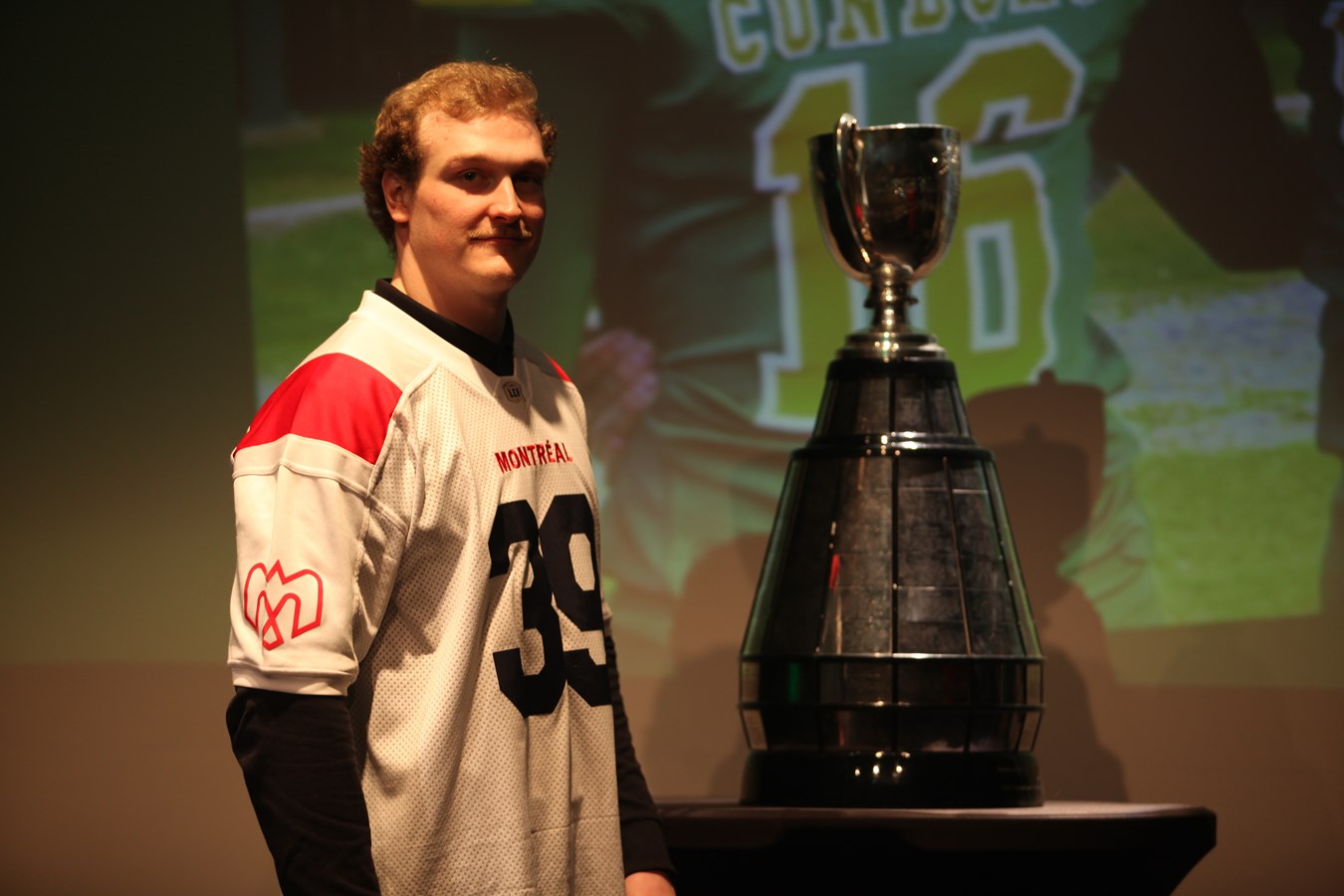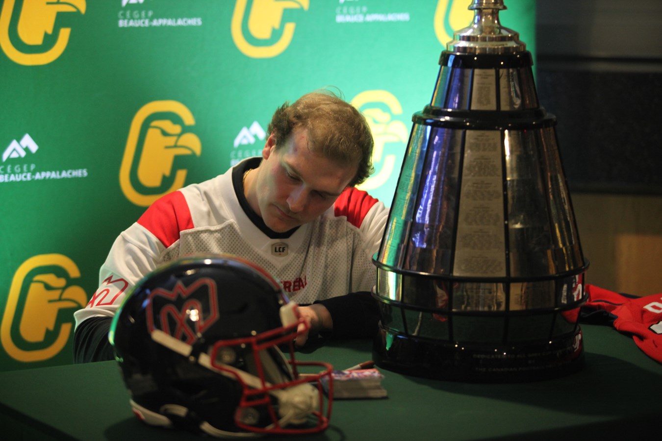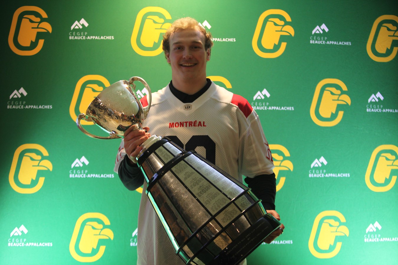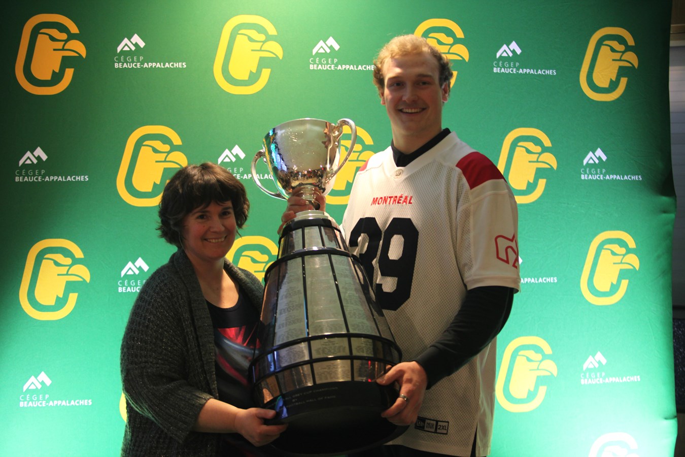 David Dallaire présente la Coupe Grey aux Condors du Cégep Beauce-Appalaches