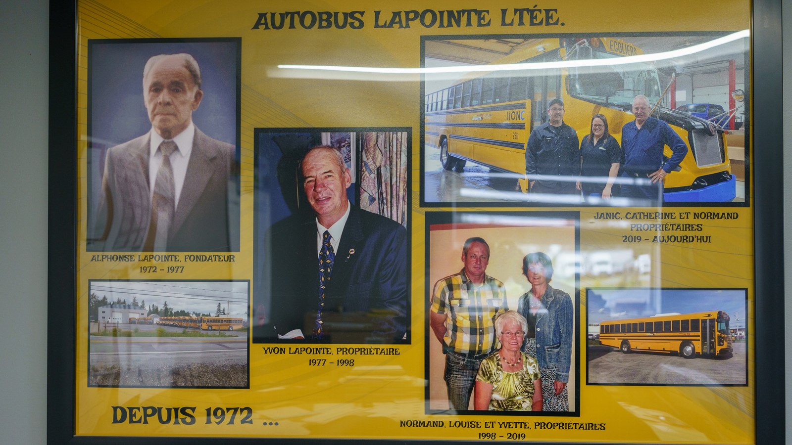 En effet, c’est le grand-père de Normand, Alphonse, qui s’est lancé dans cette voie au début du transport scolaire, dans les années 60. Il a travaillé seul pendant plusieurs années, suivi par son fils Yvon, qui avait également ses propres autobus. C’est seulement en 1972 qu’ils se sont associés pour former Autobus Lapointe ltée. Cependant, pour fonder une entreprise ‘Limitée’ il fallait être trois personnes. C’est ainsi que Normand a fait partie de l’aventure à seulement 9 ans. « Je n’avais pas une grande influence, mais il fallait trois noms alors les conditions étaient remplies », a-t-il raconté avec humour. Deux à trois ans plus tard, ils ont acheté les parcours de Saint-Cyprien.