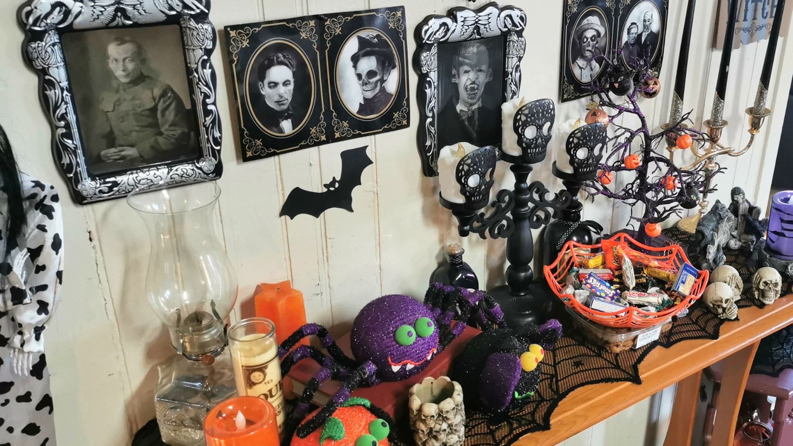 Elle n'a aucune idée du nombre d'items qu'elle a accumulés avec le temps, et qui servent à créer l'ambiance de cette fête folklorique liée dans la religion catholique à la Toussaint.