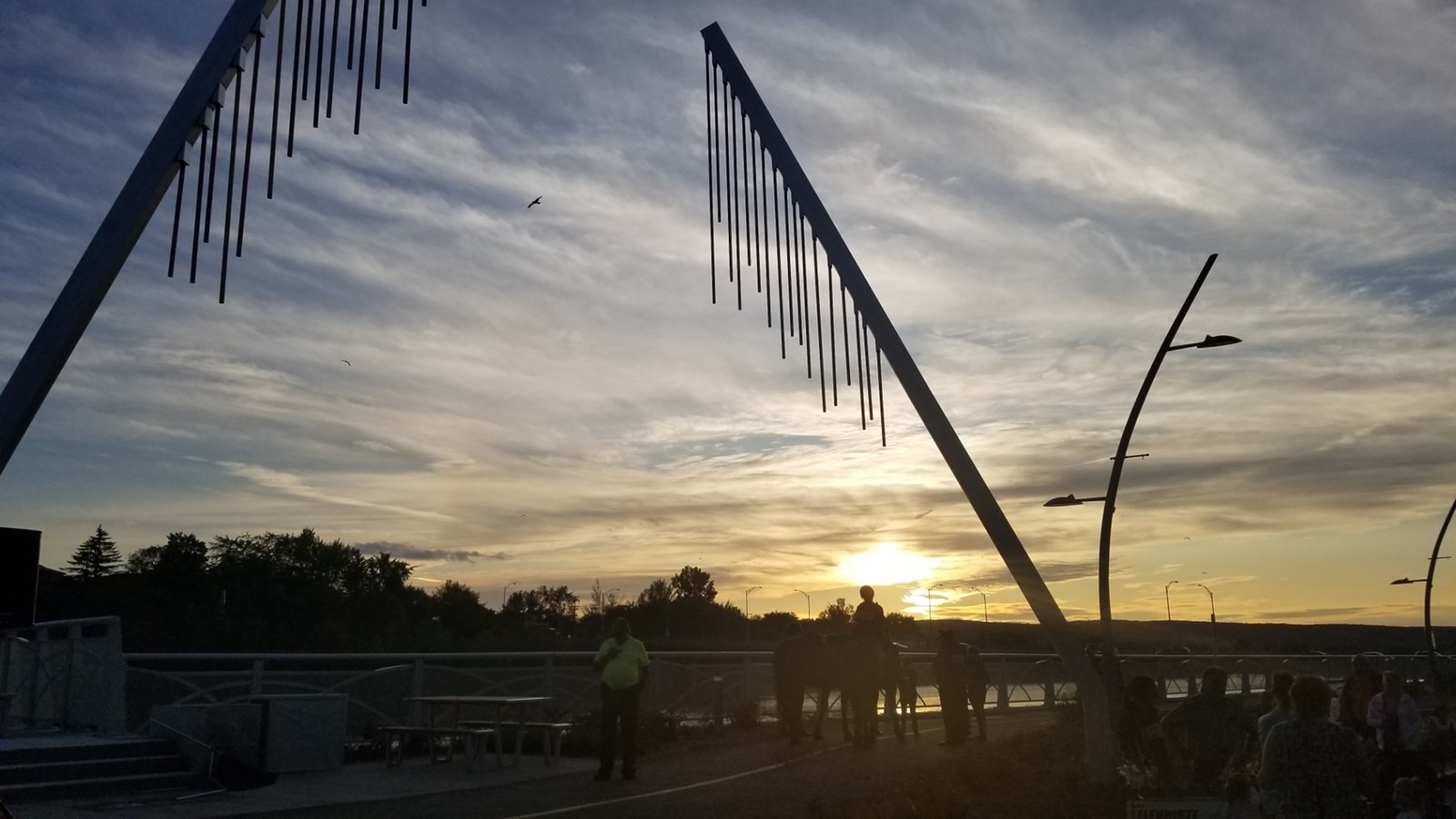 C’est cet après-midi à 15 h 30 que l’installation de l’œuvre « Déambulation éolienne » de l’artiste Ludovic Boney a été terminée. Cette sculpture qui bougera sous l’effet du vent veut inviter les passants à prendre le temps d’apprécier le calme et le paysage.