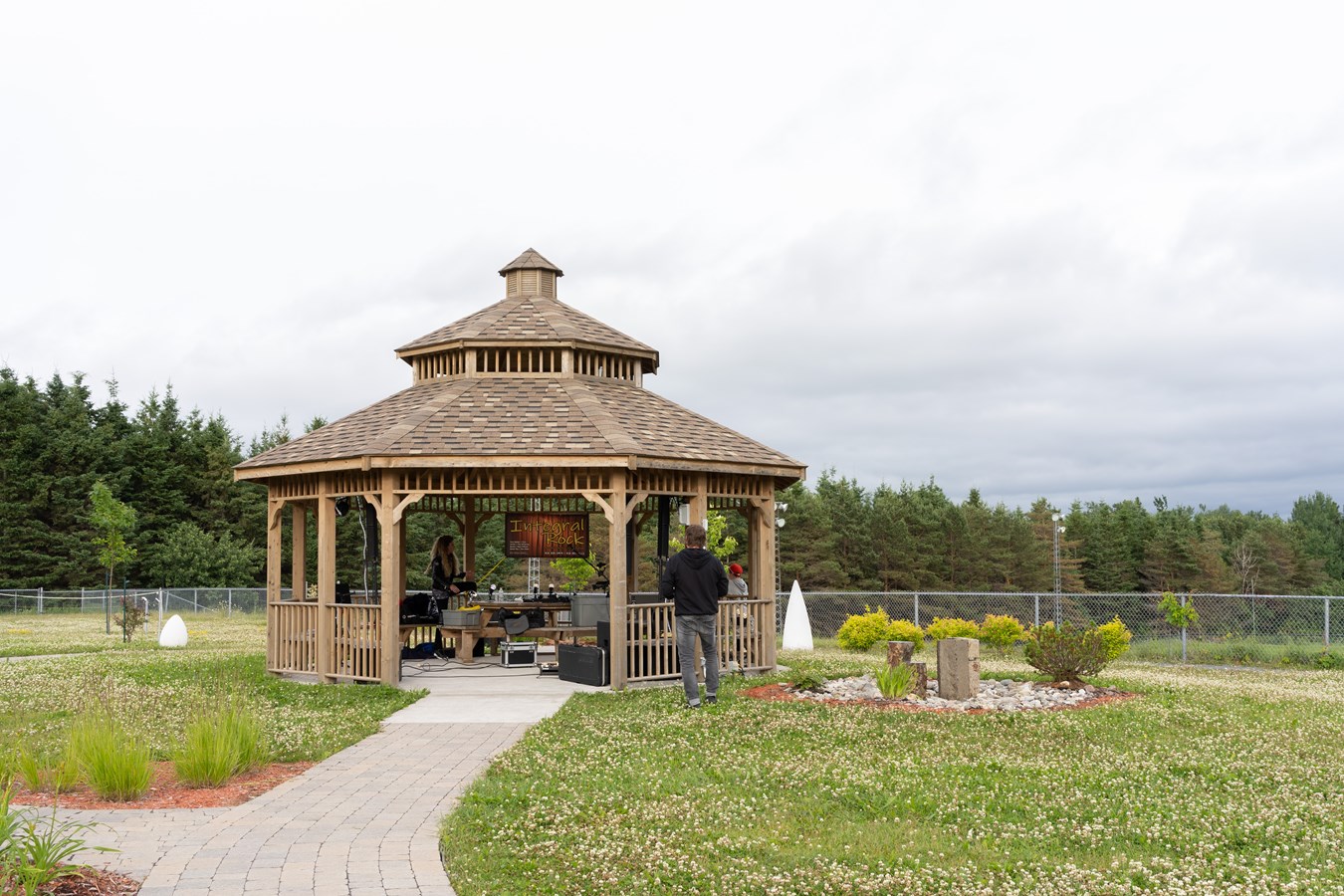 Pour clôturer l'inauguration, une soirée musicale a eu lieu dès 19h sous le pavillon du parc situé sur le terrain de l'édifice.