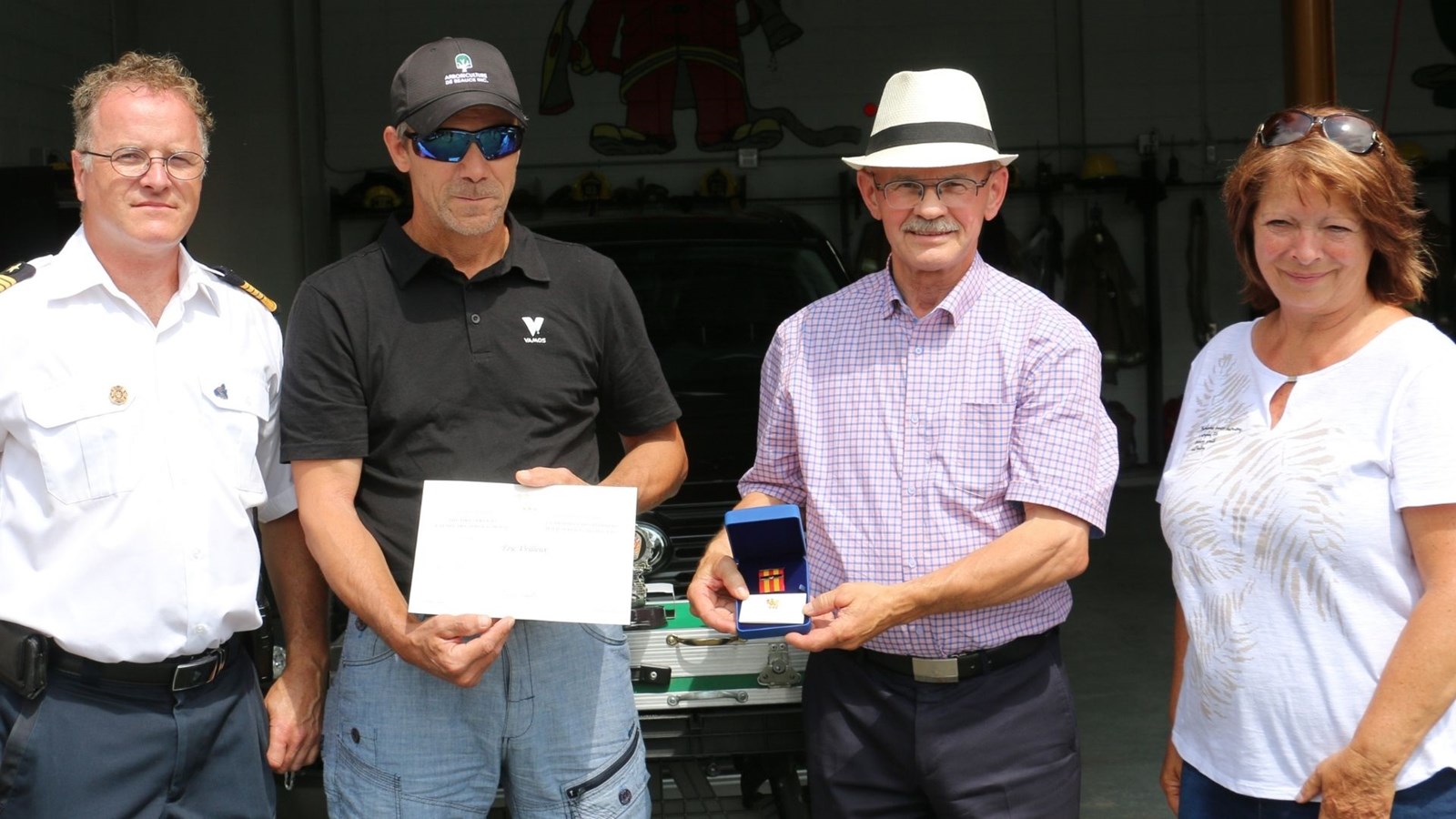 On a aussi procédé à la remise de souvenirs à quatre pompiers du service qui ont pris leur retraite, soit Éric Veilleux, Alain Boily, Denis Boily et Gilles Paris.