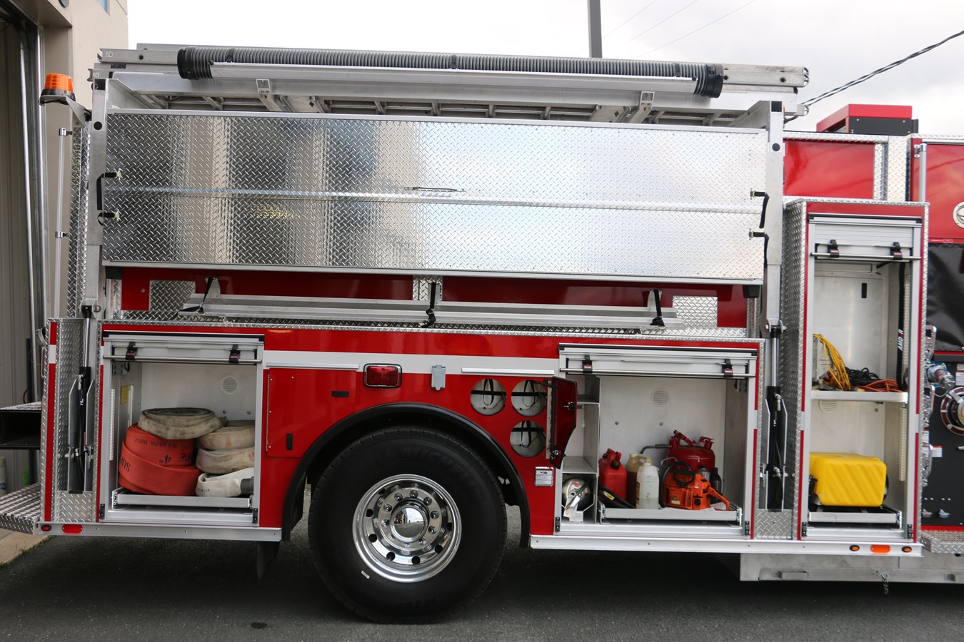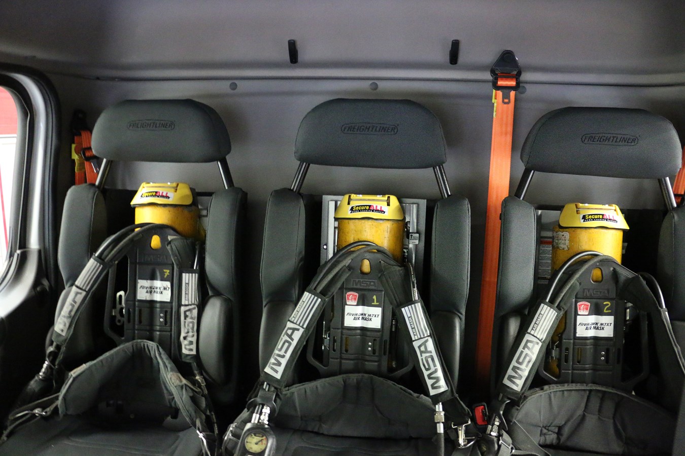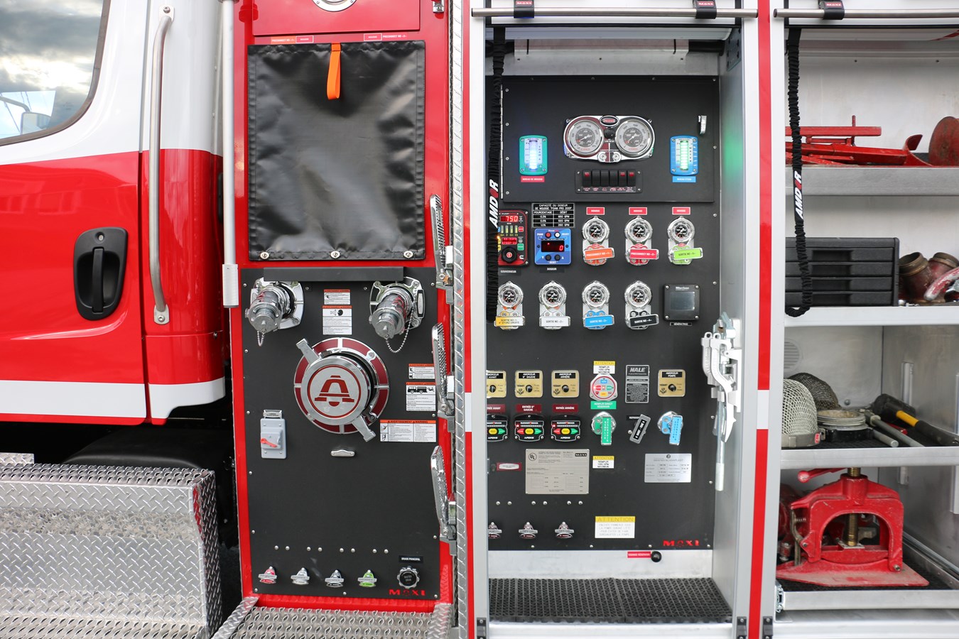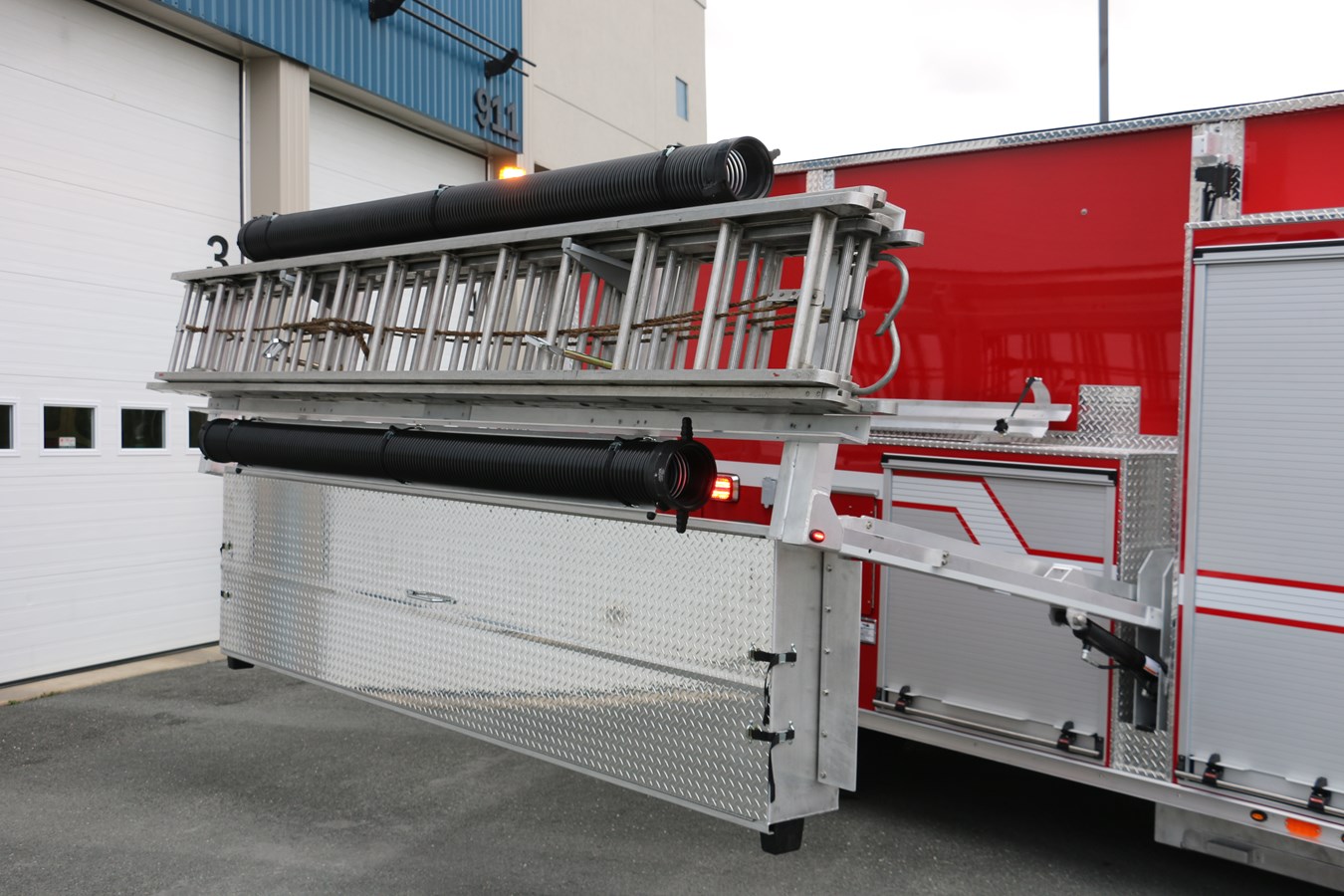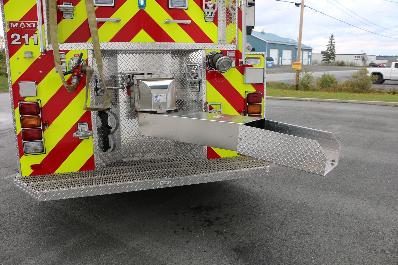 Il a également une caméra de recul, une chute arrière rotative de 180 degrés, une entrée d'eau à l'avant, ainsi que des "sièges 911" incluant l'appareil respiratoire du pompier et des rangements additionnels. Aussi, un système LED de 360 degrés, alimenté par une génératrice sur le toit intégré au moteur, est installé pour l'éclairage des scènes.