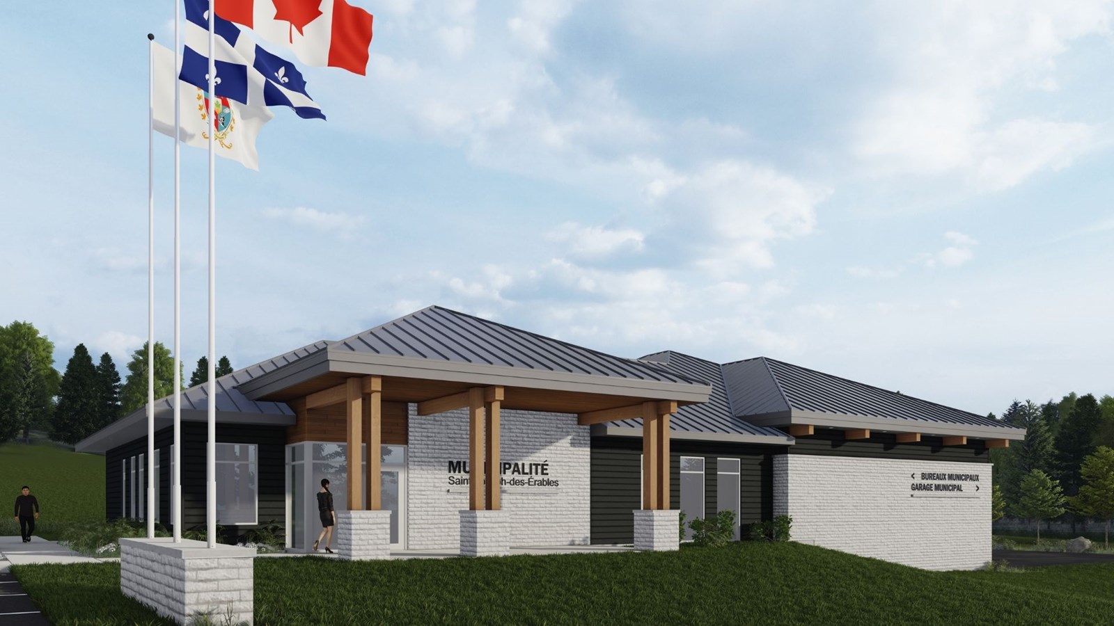 La Municipalité érigera, au 238, route des Fermes, un nouveau bâtiment d’une superficie de près de 520 mètres carrés. Une partie de l'édifice abritera les bureaux de l’hôtel de ville, comprenant notamment une salle de conférence, la salle du conseil et une cuisinette, tandis qu’une autre partie sera réservée aux espaces pour le garage municipal.