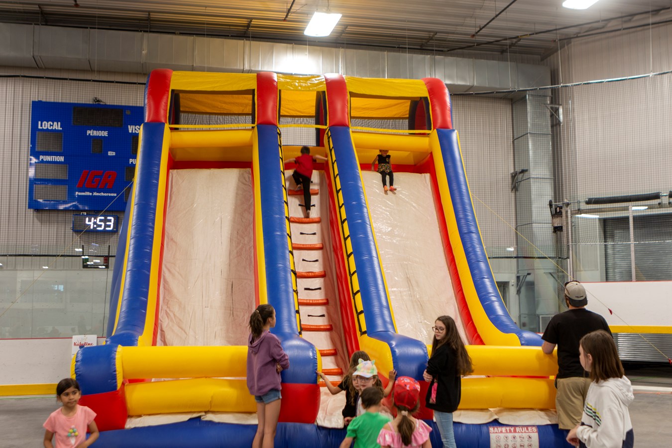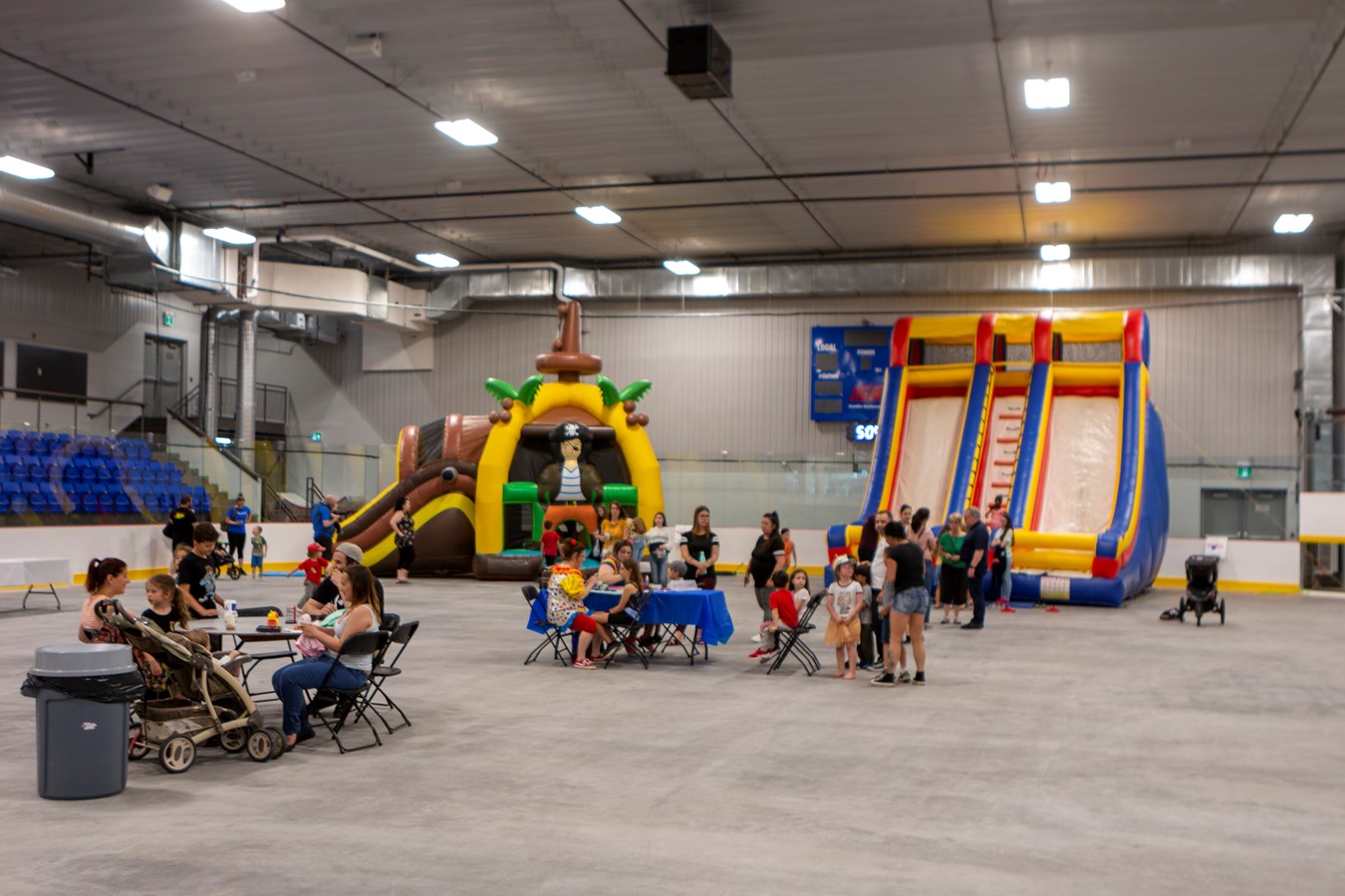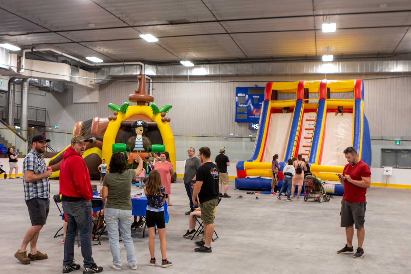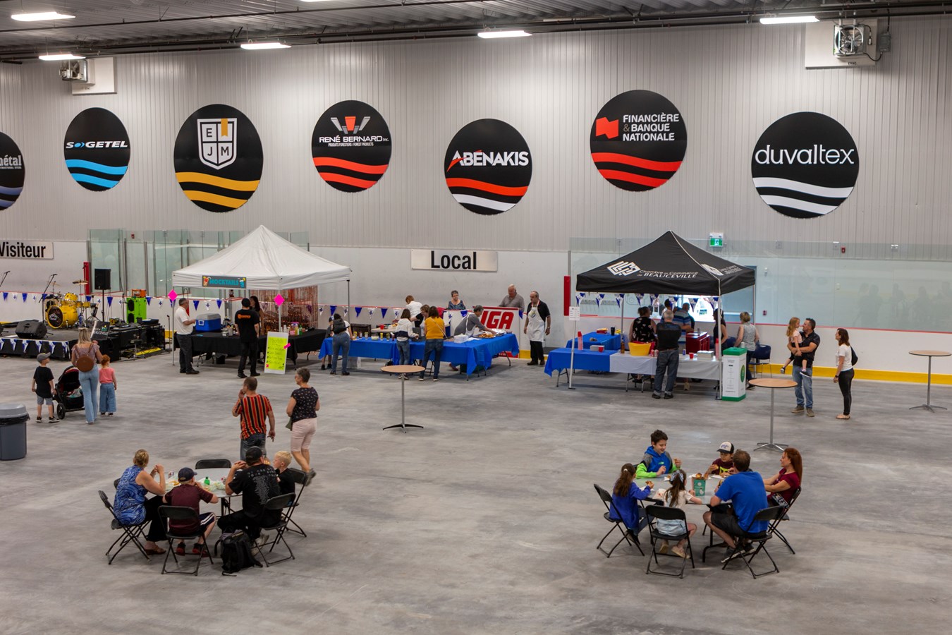À l’intérieur de l’aréna EJM/René-Bernard, les familles pouvaient profiter des jeux gonflables, du maquillage, du souper hot-dog au profit des Chevaliers de Colomb, le bar au profit de la Chambre de commerce de Beauceville, un kiosque de mocktail et des dégustations de bouchées préparées par des personnes immigrantes de la ville en collaboration avec le Carrefour jeunesse emploi Beauce-Nord. Des musiciens étaient aussi présents.