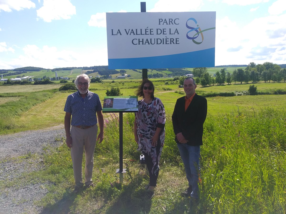 Pour souligner le 90e anniversaire de la fondation du journal La Vallée de la Chaudière, la Ville de Saint-Joseph-de-Beauce a procédé au dévoilement du parc nommé en l’honneur du fondateur du journal M. Gérard Poulin.