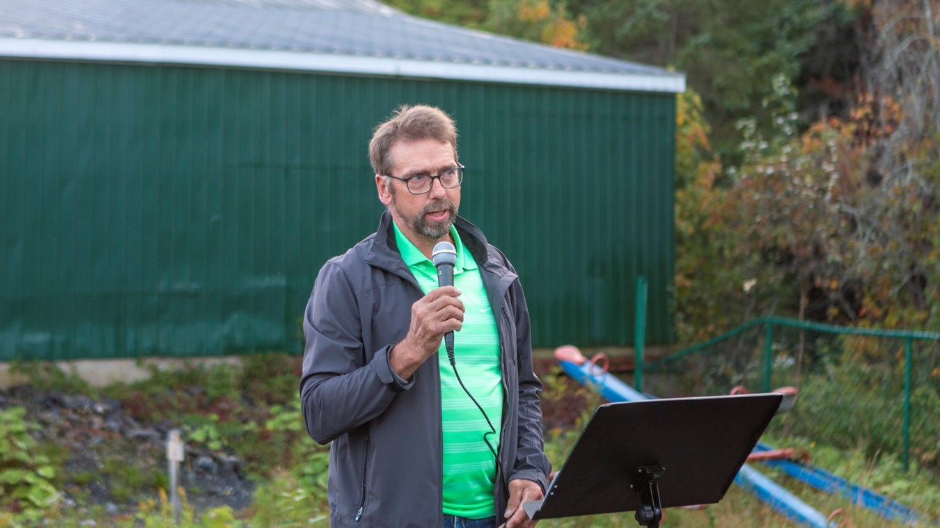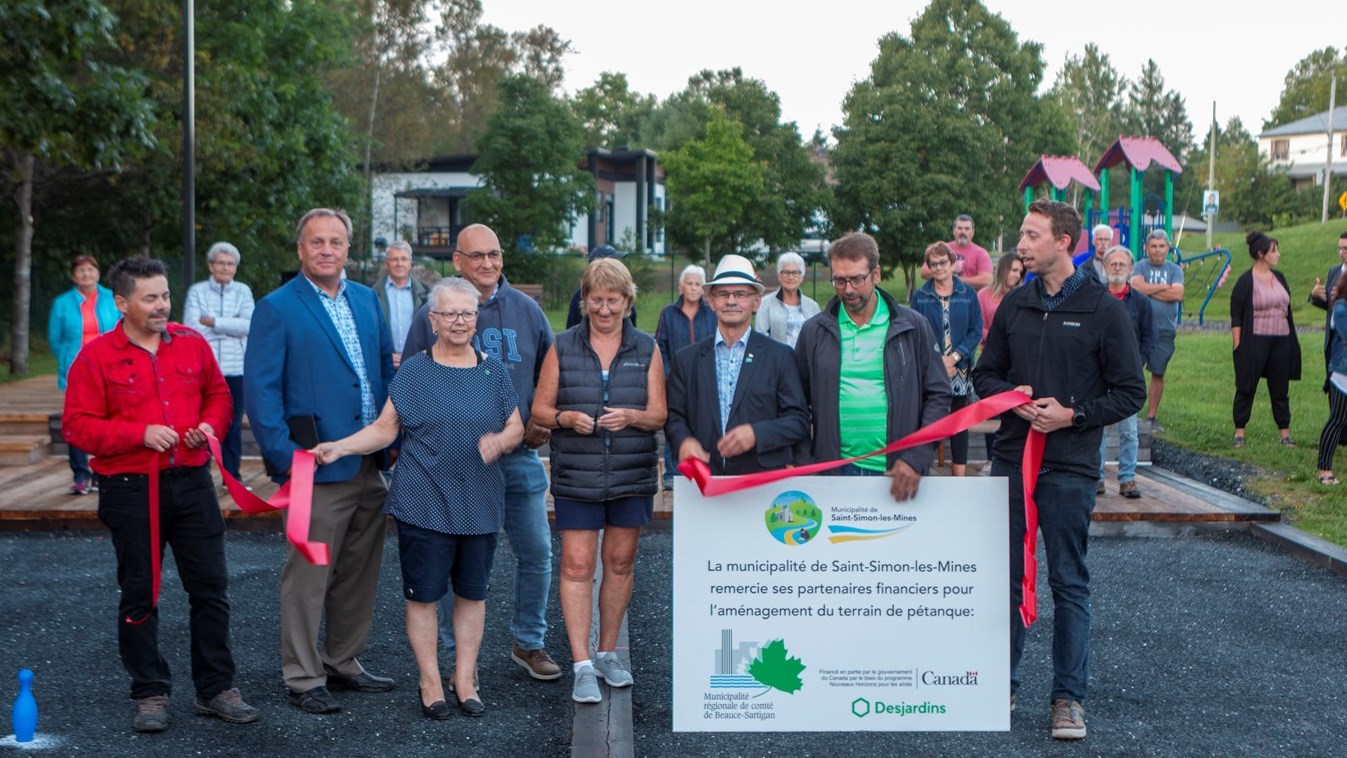 C’est en compagnie de Jean-Yves Busque conseiller de la municipalité de Saint-Simon, Dany Quirion préfet de la MRC Beauce-Sartigan, Richard Lehoux, député fédéral, Christine Caron, représentante de Desjardins, Maxime Grenier, représentant du comité consultatif des loisirs ainsi que Jacinthe Jacques et Martin St-Laurent responsables du projet que la coupe du ruban a été réalisée sous le regard de quelques citoyens de St-Simon-les-Mines.